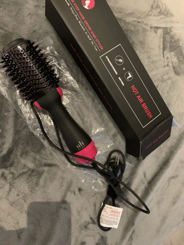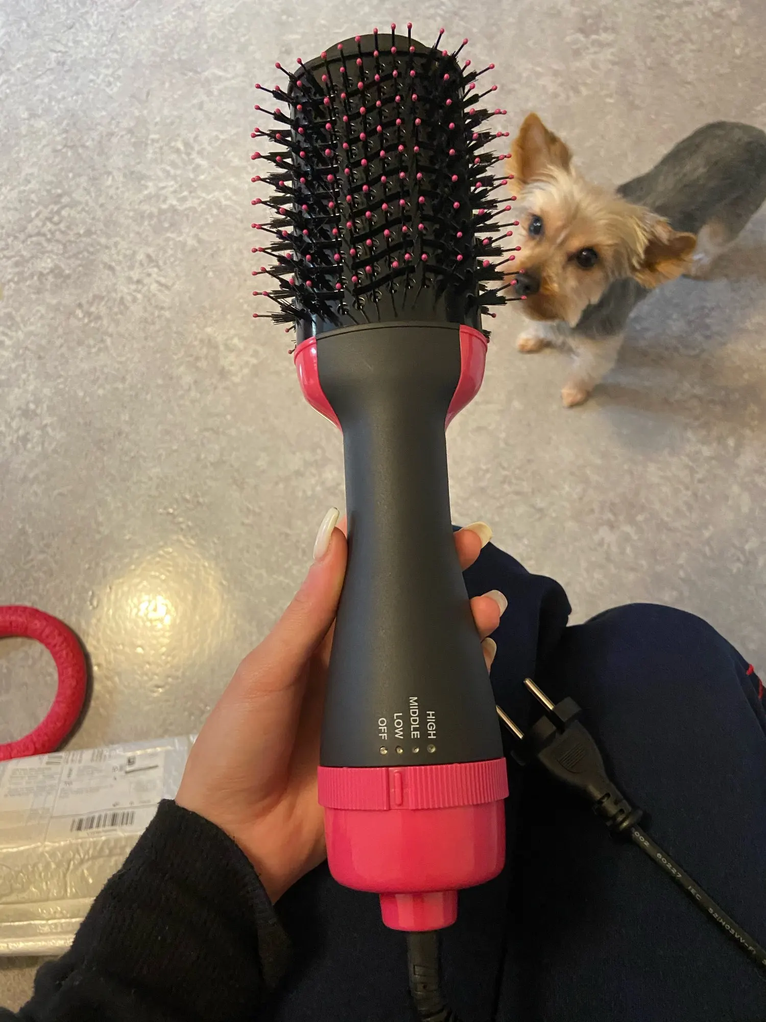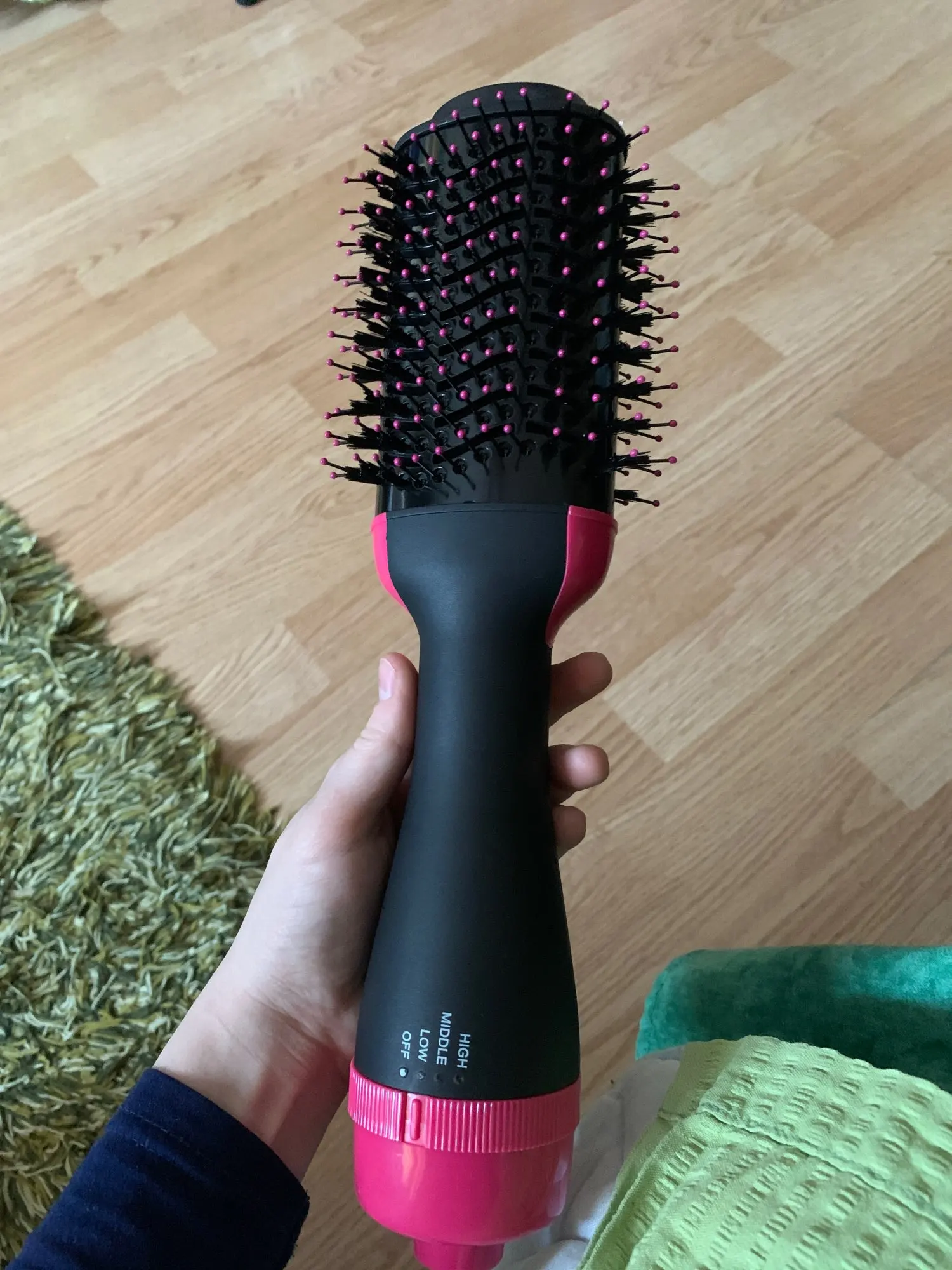 Фен-щетка крутая! Минус, но для меня не существенный вообще, это то, что она не крутится. Воздух даже на самую мощность не горячий, что сохранит волосы в порядке. Волосы после укладки мягкие, блестящие как и правда после салона!)))) Доставка очень быстрая