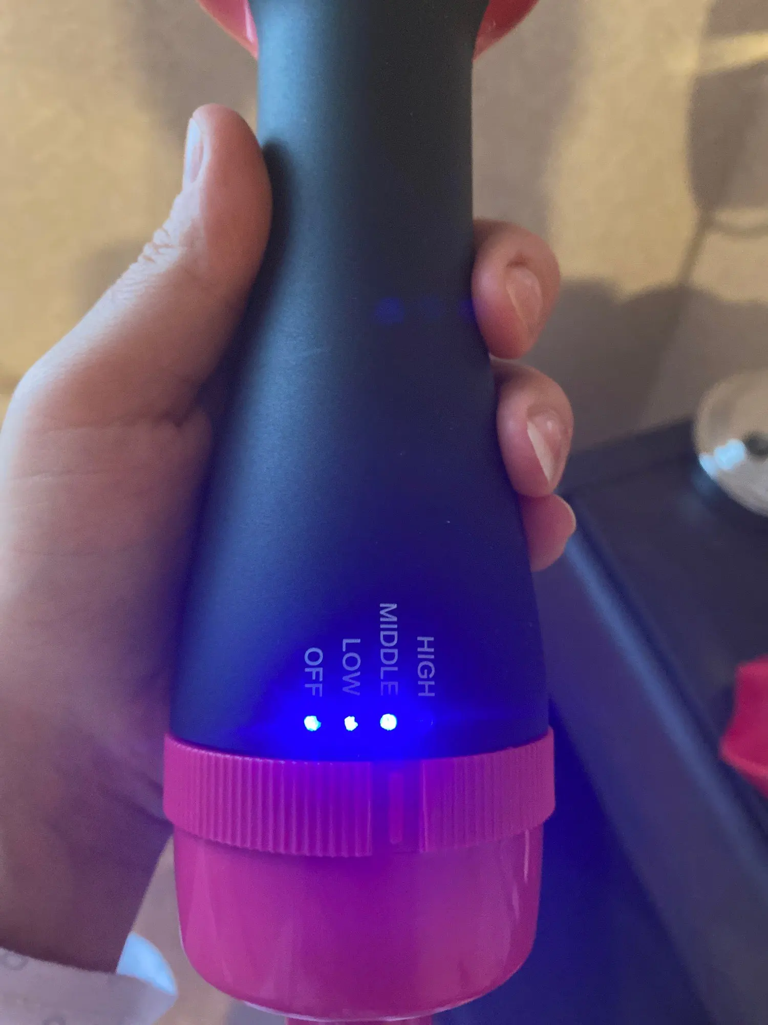 Покупкой довольна очень.Выглядит и по качеству исполнения на 5. Имеет три режима. Удобно переключается. Есть индикатор подключения к электросети. Большая щётка для моих густых волос в самый раз. Доставка 10 дней в Анапу. Курьер привёз домой. Продавцу процветания