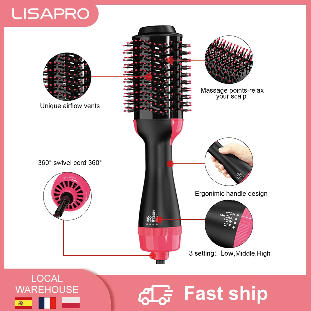 LISAPRO одношаговая щетка с горячим воздухом Бытовая щетка для сушки волос и волумайзер для завивки волос выпрямитель для салона Инструменты для укладки волос