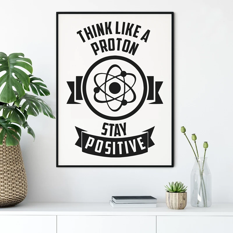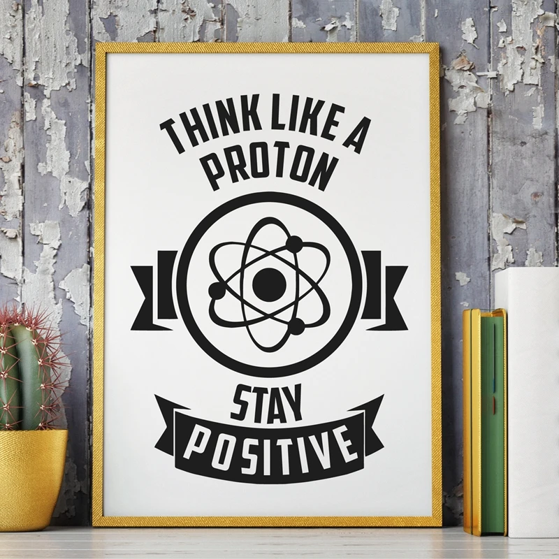 Физика, химия, мотивация, с принтом с цитатой, искусство думай как Протон для гиков, плакат, Картина на холсте, для офиса, галереи, Настенный декор