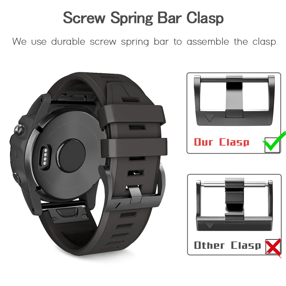 Этот ремешок для часов fenix 5 plus изготовлен из гибкого силикона, удобен для повседневной носки. Слоты в полосе для регулировки длины, вы можете выбрать предпочтительный слот для использования, и отрегулировать его, чтобы соответствовать вашему запястью. Хранители силиконовых браслетов также помогут вашему браслету оставаться на месте.