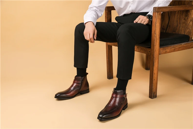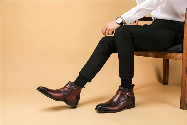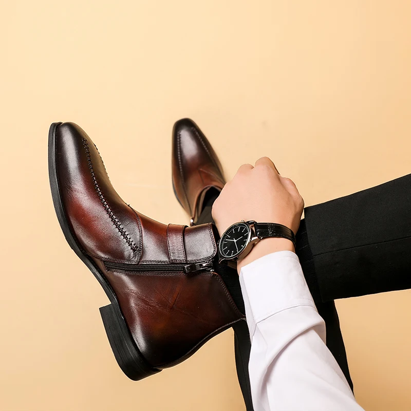 Мужские зимние ботинки челси из натуральной коровьей кожи, ботинки, броги, повседневная обувь на плоской подошве, удобные качественные классические ботинки на молнии, 2022