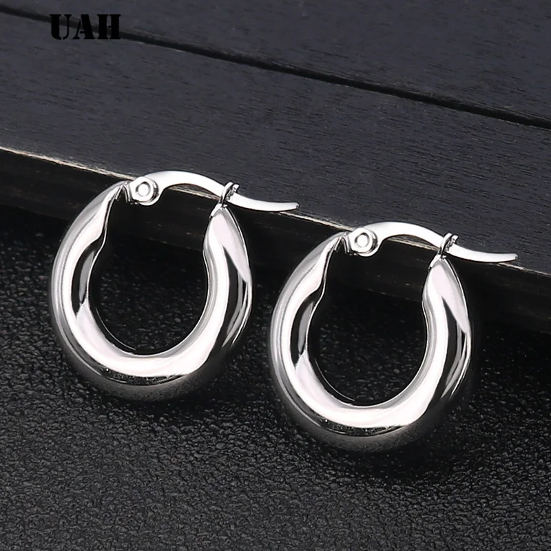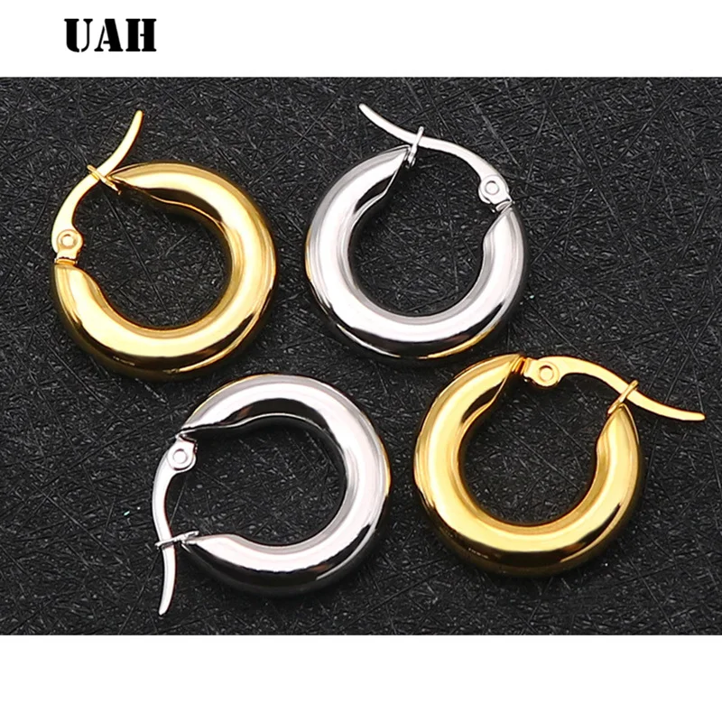 Женские Двухцветные серьги-кольца UAH, модные ювелирные изделия золотого цвета из нержавеющей стали, круглые серьги-кольца