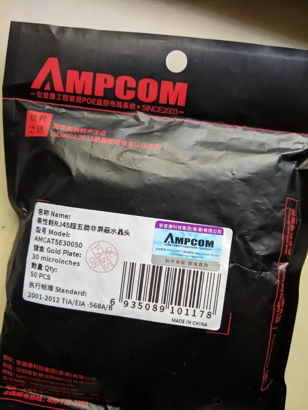 Отличное оборудование cat5e разъемы доставлены в течение 15 дней, уже Протестировано все работает как профессиональное оборудование не жаловаться.
