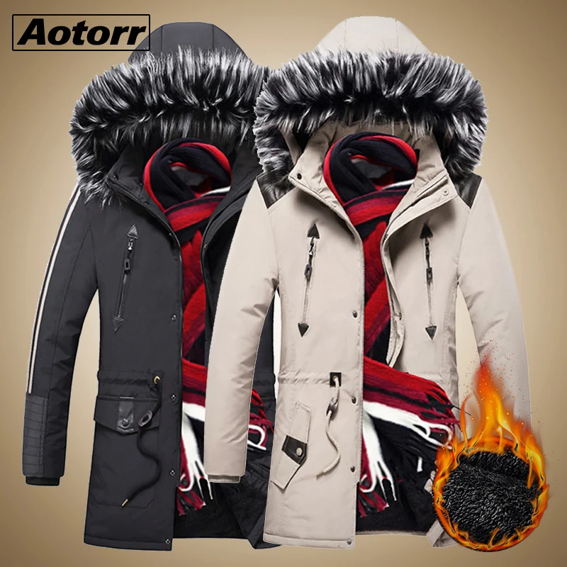 Зимняя мужская куртка-пуховик, мужские Длинные парки, меховой ворот...