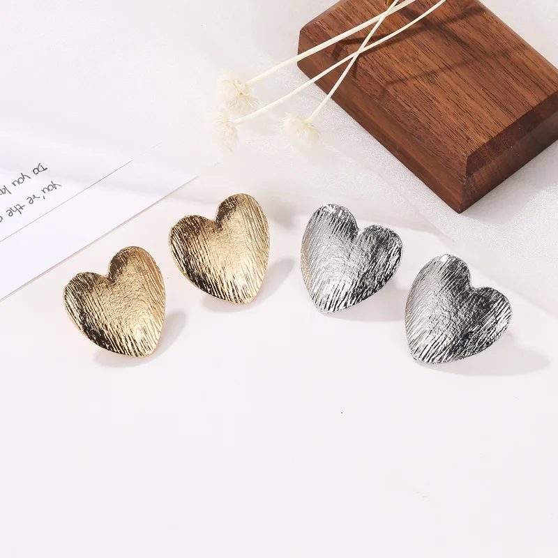 Корейские серьги 2019 в форме сердца для женщин, серьги для пар, матовые, золотые, серебряные, розовые, золотые, металлические ювелирные изделия, простые серьги-гвоздики