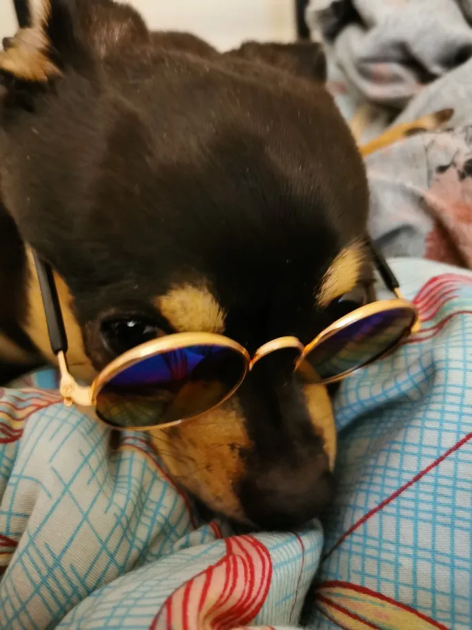 Очки идеально подошли шпицу, но он не хочет их носить))))