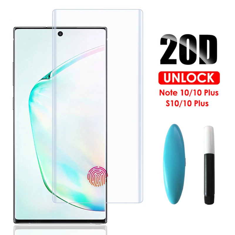 Закаленное УФ-стекло 100D для Samsung Galaxy S20, S10 Plus, Note 10...