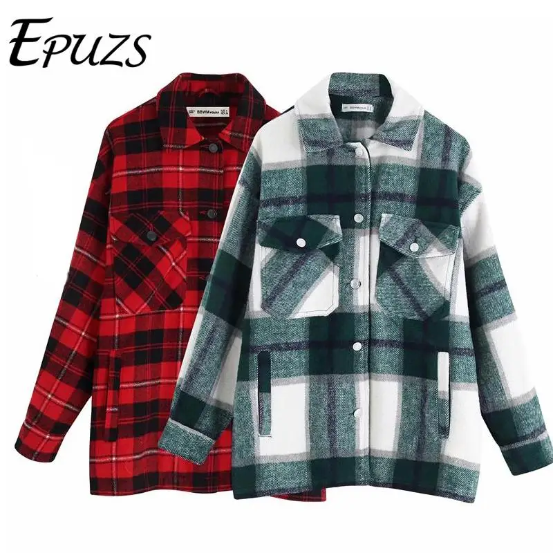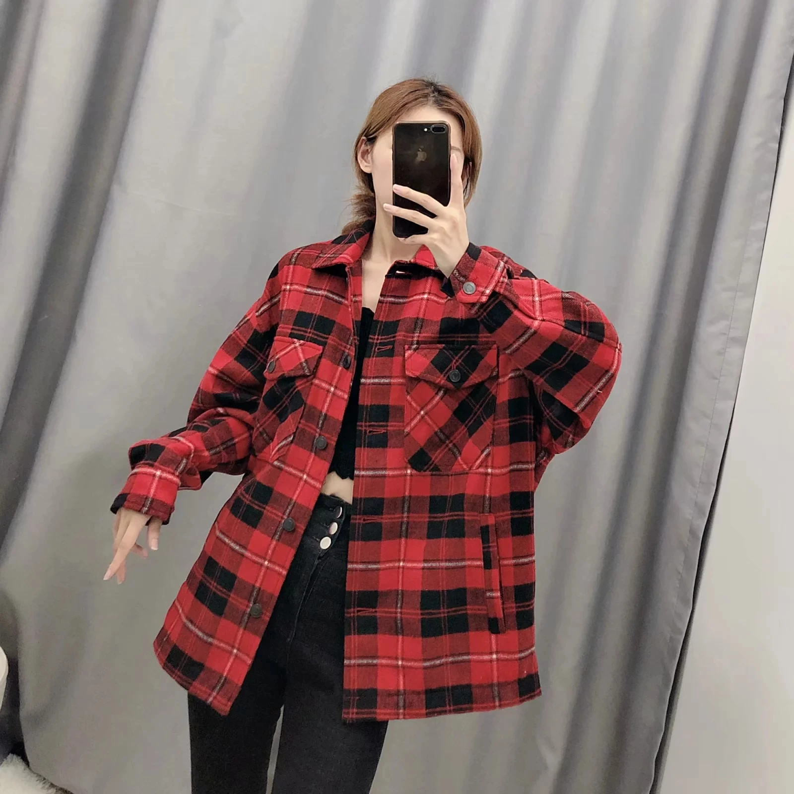 Осенние красные клетчатые пальто и куртки, женская уличная одежда, модные женские пальто с длинным рукавом, верхняя одежда оверсайз 2019