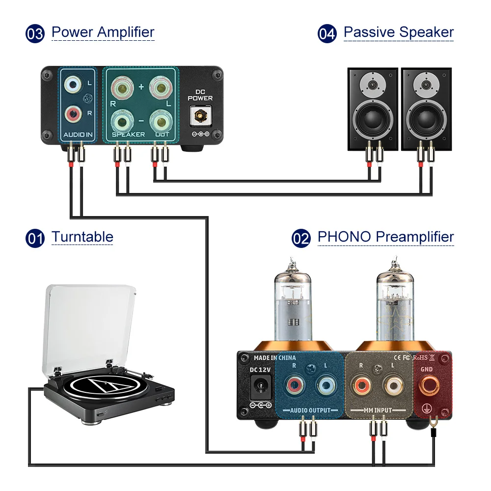 3. Подключите выходной кабель phono к входному разъему аудио мм.