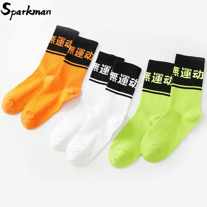 Носки мужские в стиле хип-хоп, уличная одежда харакудзю, хлопковые хипстерские модные носки с принтом китайского канадзи, оранжевые белые зеленые для скейтборда