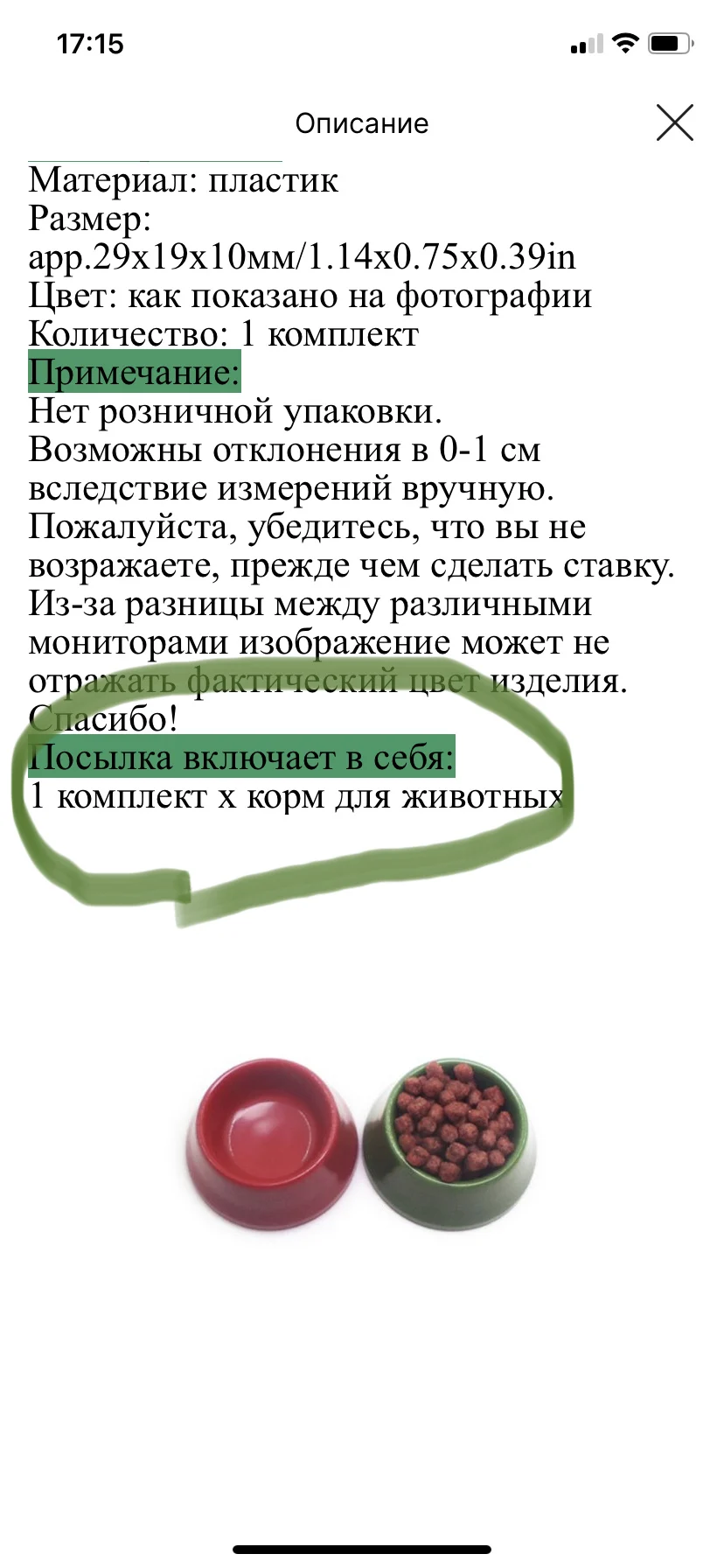 100% новый и высокое качествоОсобенности:Настоящий дизайн с отличным качеством изготовления.Подходит для 1/12 масштабе кукольного домика, миниатюрный орнамент для сцены жизни.Изысканная коллекция для кукол, превосходное дополнение к любому традиционному кукольному домику, отлично подходит для добавления жизненной атмосферы для вашего кукольного домика.Поместите его в кукольный дом для более реалистичного эффекта сцены жизни.Примечание: Этот продукт-Коллекционная Миниатюрная игрушка для взрослых, а не игрушка для детей.Только корм для домашних животных, другие аксессуары на фото не включены.