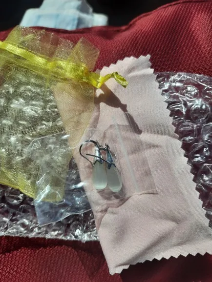 Посылка пришла очень быстро. Первые серьги случайно разбила. Вот решила купить снова. Очень люблю эти серьги. Качество отличное. Не вызывают аллергии (у меня аллергия на бижутерию иногда бывает). Советую. Отличный товар