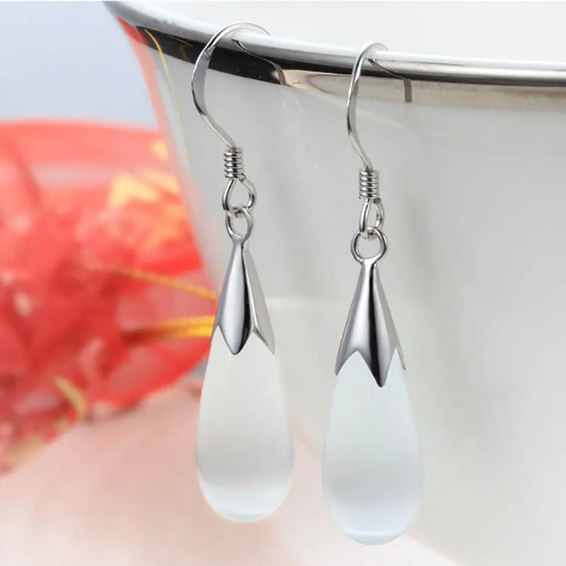 Bague Ringen элегантные женские серебряные 925 ювелирные изделия корейские модные серьги для женщин с камнем Кошачий глаз в форме капли воды 2 вида цветов