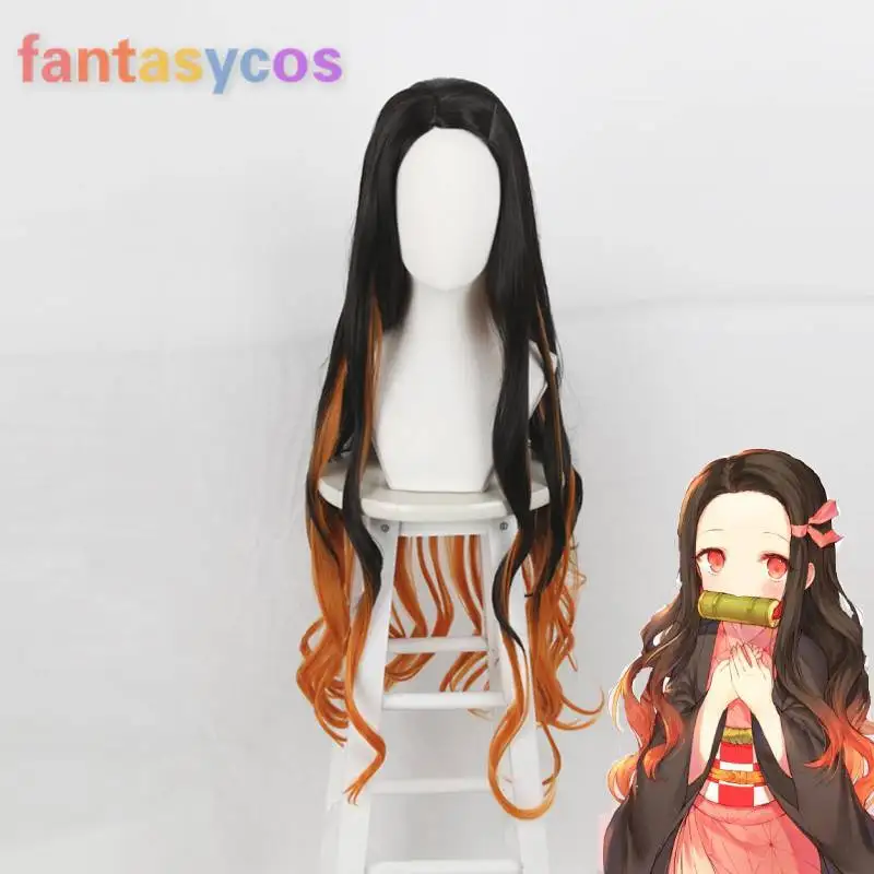 Камадо незуко Demon Slayer Kimetsu no Yaiba, длинный кудрявый костюм для косплея, термостойкие волосы, женский парик вечерние + бесплатная шапочка для парика