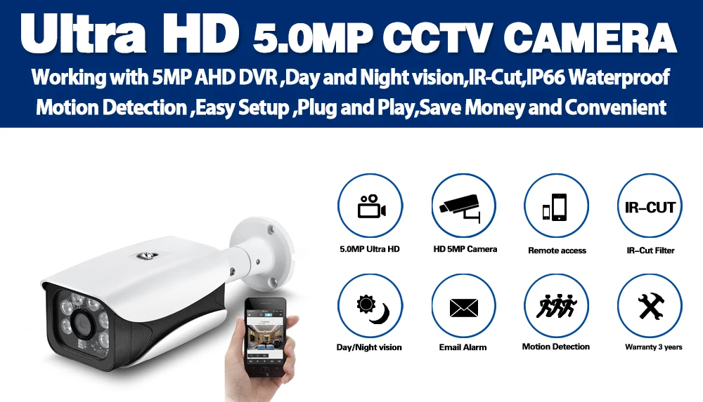 1, Ультра HD 5 Мп дисплей высокой четкости;2. Ультра HD 5MP AHD камера, металлический материал, IP66 водонепроницаемый, подходит для внутреннего и наружного использования; Пылезащитная, надежная Домашняя безопасность;3. Улучшенное H.265 Сжатие видео, подключи и работай, простота установки;4. Поддержка распознавания лица, записи лица, воспроизведения лица, обеспечивает ультра высокое разрешение видео наблюдения, обеспечивая максимальную детализацию и четкость доступны;5. Поддержка IR-CUT переключателя двойного фильтра, днем и ночью для достижения мониторинга, цвет не является частичным искажением цвета;6. Поддержка расстояния передачи составляет 500 метров, Ультра HD дневное ночное видение;7. Поддержка обнаружения движения, оповещения по электронной почте, воспроизведение видео8. Поддержка Android,Iphone,Ipad, ПК, P2P просмотра;9, удаленный доступ в любом месте, в любое время;