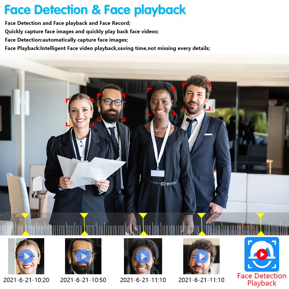 Обнаружение лица, воспроизведение лица и запись лица; Быстрое снятие изображений лица и быстрое воспроизведение видео лица; Распознавание лица: автоматическое снятие изображений лица; Интеллектуальное воспроизведение лица: интеллектуальное воспроизведение видео лица, экономия времени, не пропустите все детали.