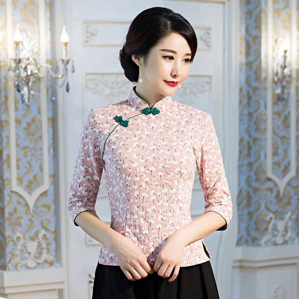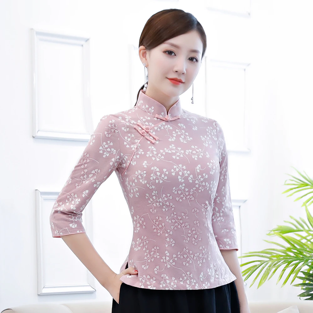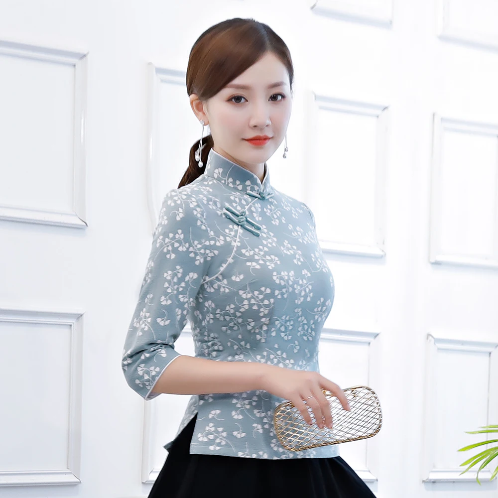 Традиционная Женская рубашка с воротником-стойкой, классическая одежда с цветами, модель 3XL, Женский Топ в винтажном стиле Ципао, блузка