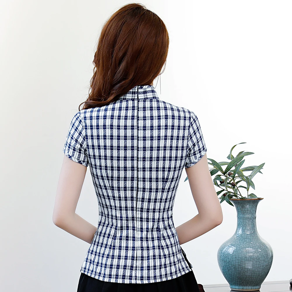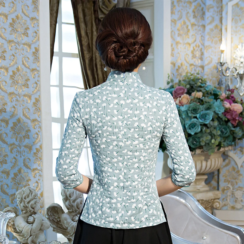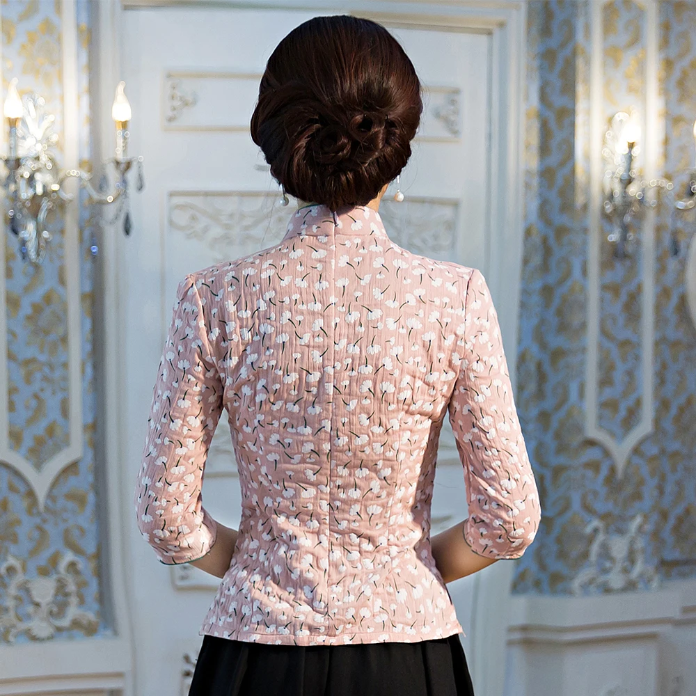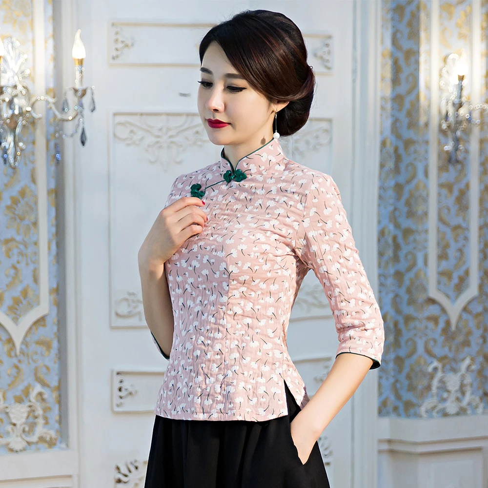 Традиционная Женская рубашка с воротником-стойкой, классическая одежда с цветами, модель 3XL, Женский Топ в винтажном стиле Ципао, блузка