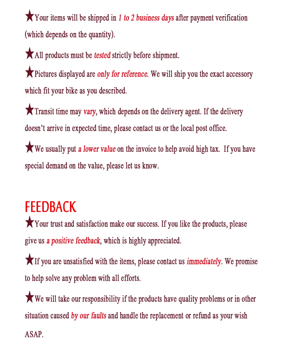 Примечание:(1)Пожалуйста, ознакомьтесь с изображением товара, чтобы убедиться, что он подходит для вашего мотоцикла. Если у вас есть какие-либо вопросы, свяжитесь с продавцом.(2) возможны отклонения в 1-3 мм из-за ручного измерения. Пожалуйста, убедитесь, что вы не против, прежде чем сделать заказ.Из-за разницы между различными мониторами изображение может не отражать реальный цвет изделия. Спасибо!