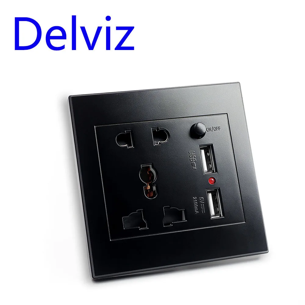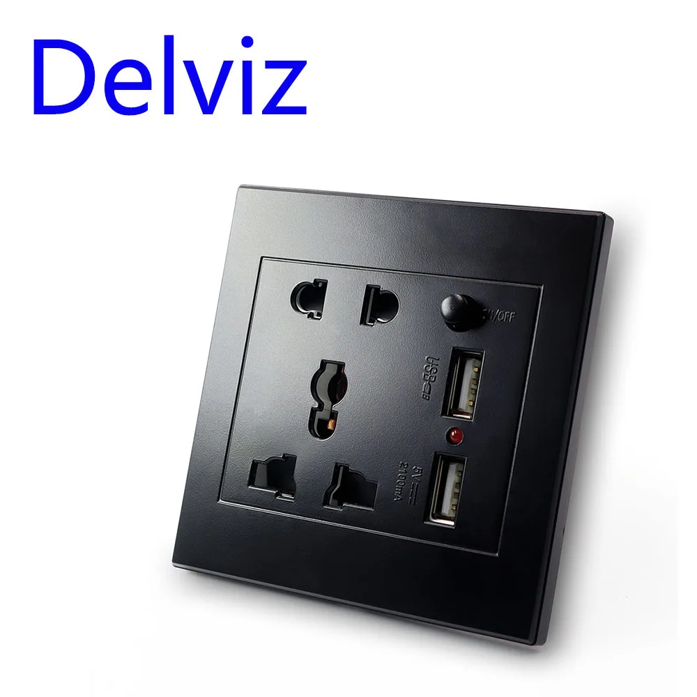 Многофункциональная розетка Delviz, переключатель управления, защита от перегрузки по usb, мощность быстрой зарядки 86, черная, Универсальная панель настенная розетка usb