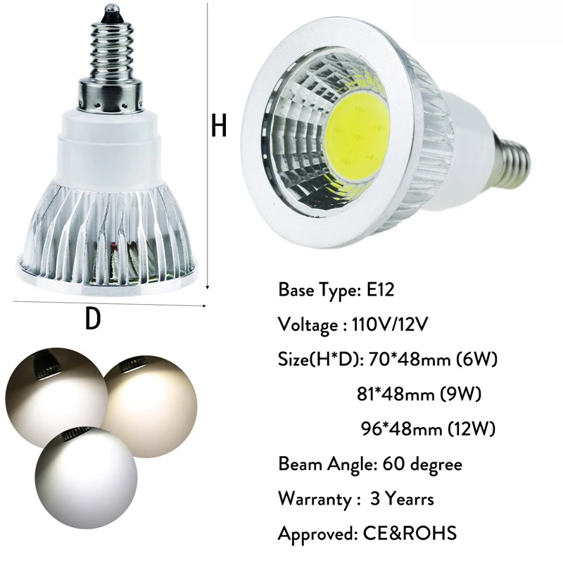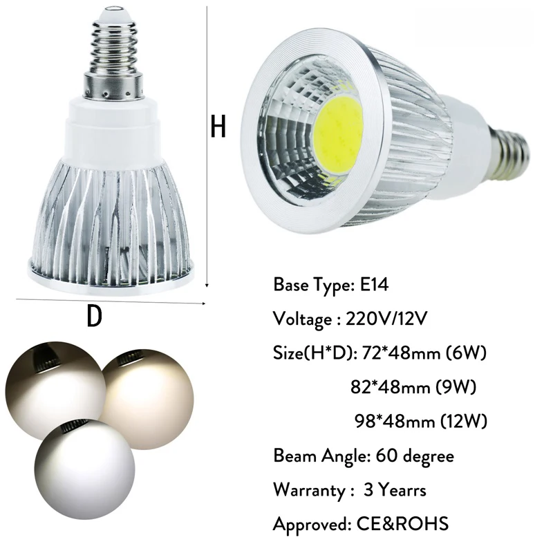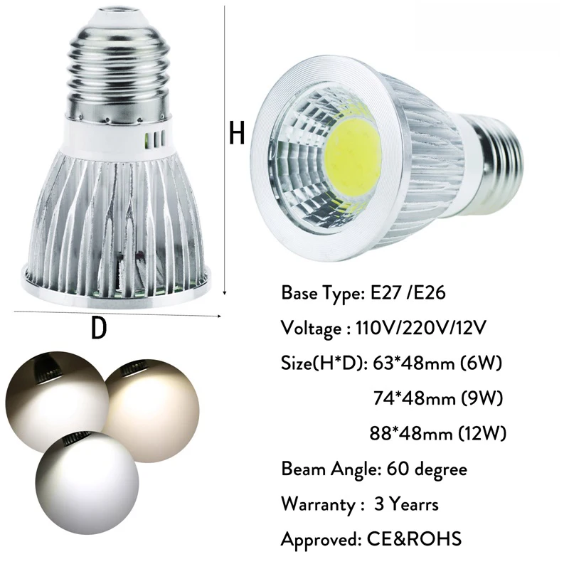 Тип цоколя: E14/E27/GU10/MR16/E12/GU5.3/B22 Напряжение: ac85-265/110 В/220 В/12 В постоянного тока Затемнения или нет: без диммера Цвет света: холодный белый 6000-6500 K/теплый белый 2800-3200 K/нейтральный белый 4000-4500 K Сертификация: CE & ROHS Ультратонкое естественное освещение CRI> 80 Гарантия: 3 года Угол луча: 60 градусов