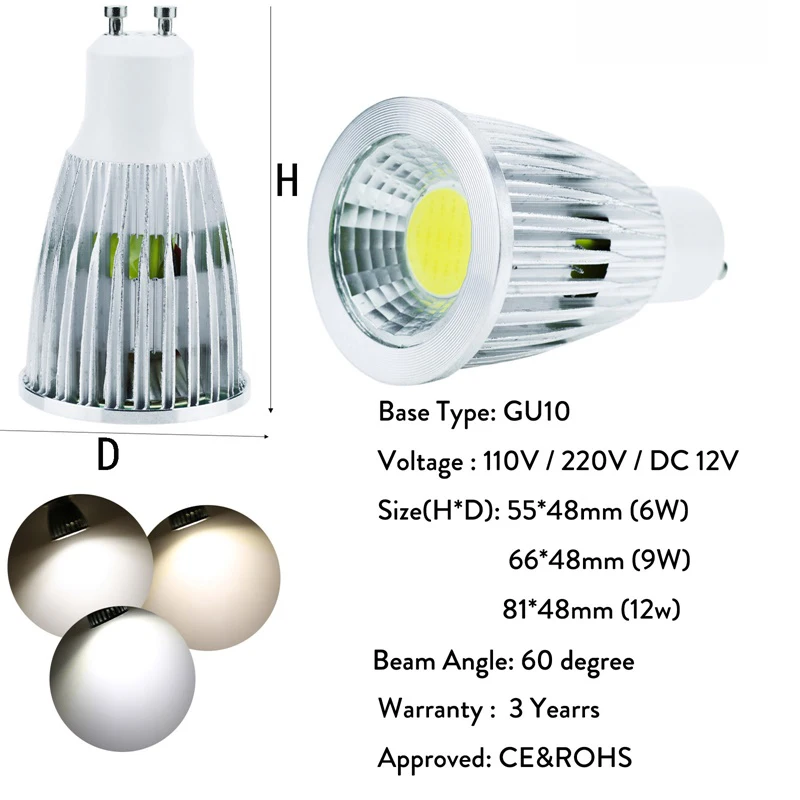 Wattagegu10 cob 12w