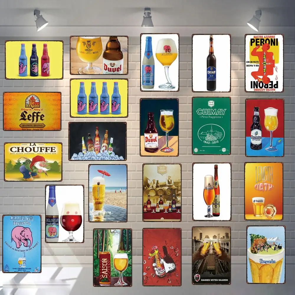 Декоративные таблички бельгийского пива, металлическая настенная ви...