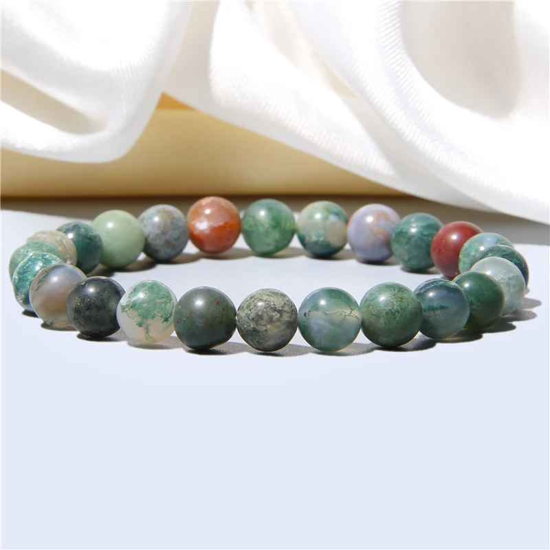 Браслет ручной работы из натуральных камней, искусственные бусины, мужские украшения, зеленый моховые Агаты, браслет из бисера для женщин и мужчин