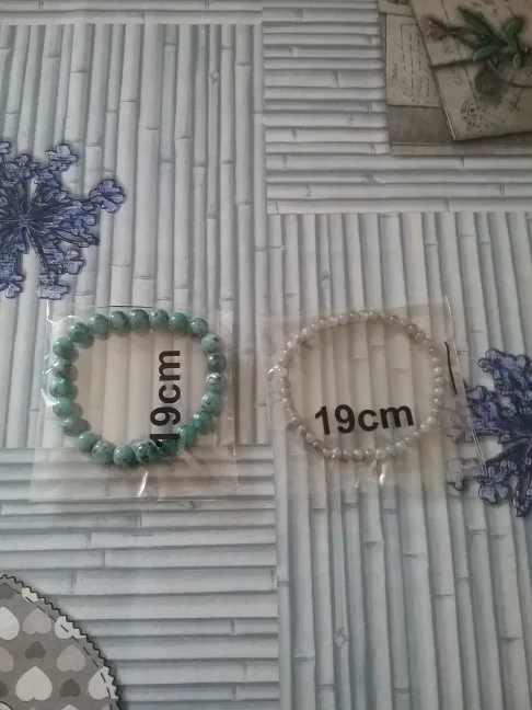 Браслет намного тусклый и матовый, чем на фото. Я ожидала, что бусины большего диаметра. Натуральные камни? У меня есть некоторые сомнения. Хорошее соотношение цены и качества и очень быстрая доставка.