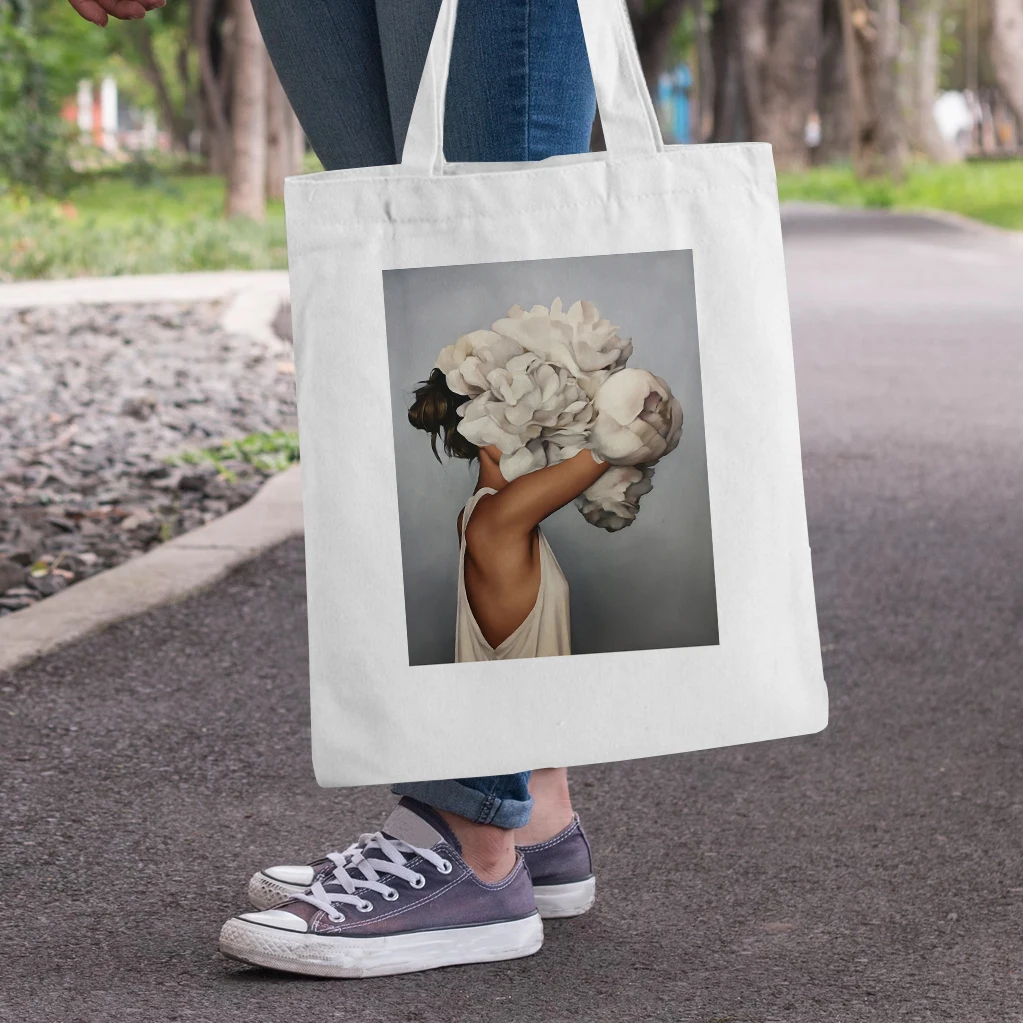 Сумка-тоут женская, тканевая, с принтом вегетарианских цветов