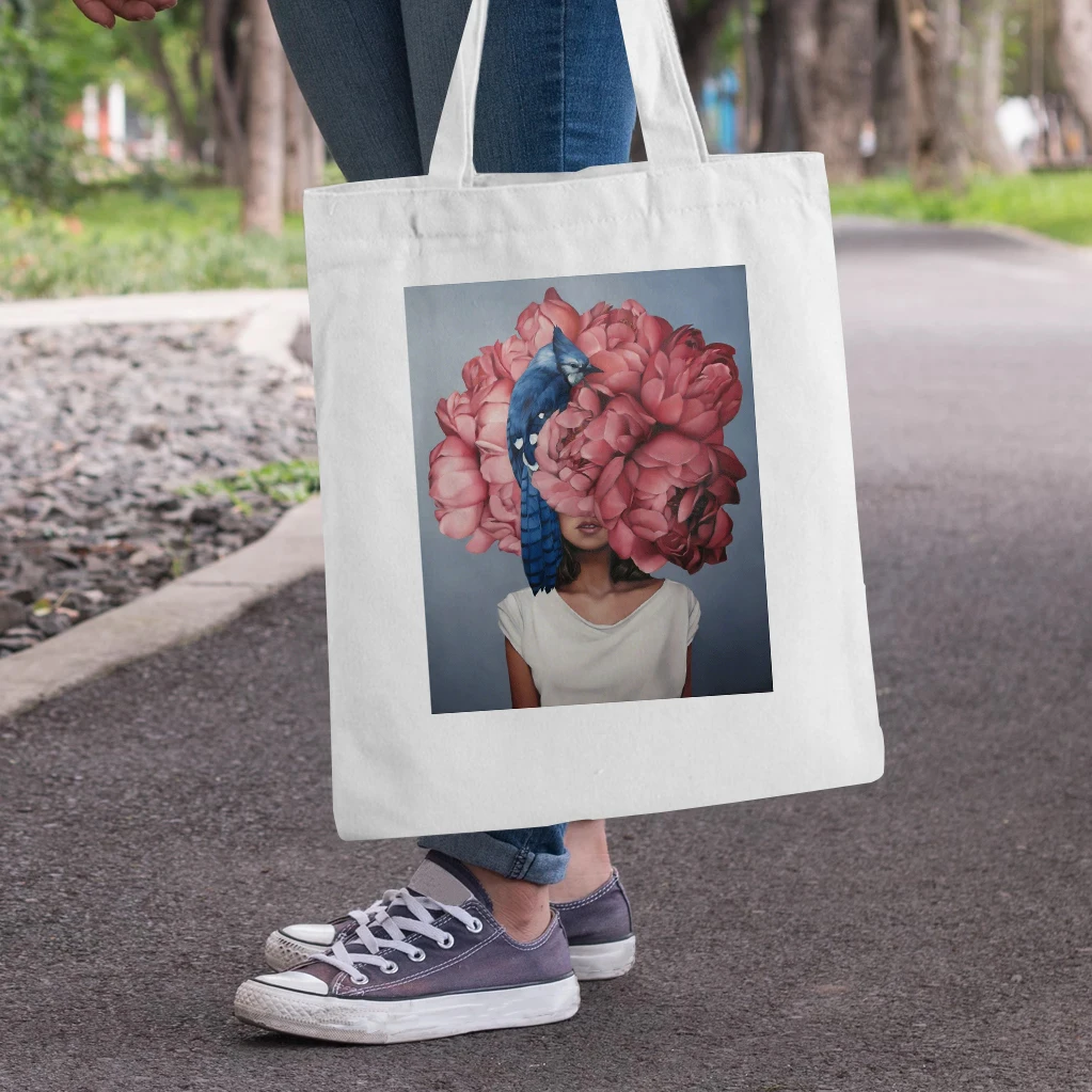 Холщовая Сумка через плечо, с цветочным принтом и надписью
