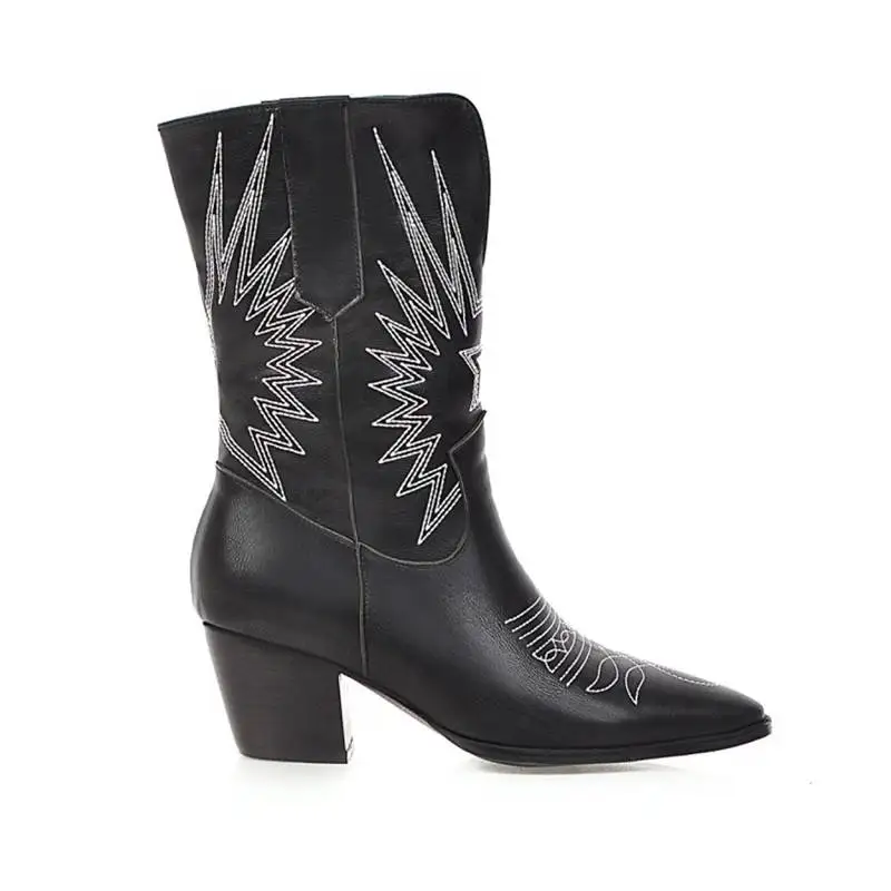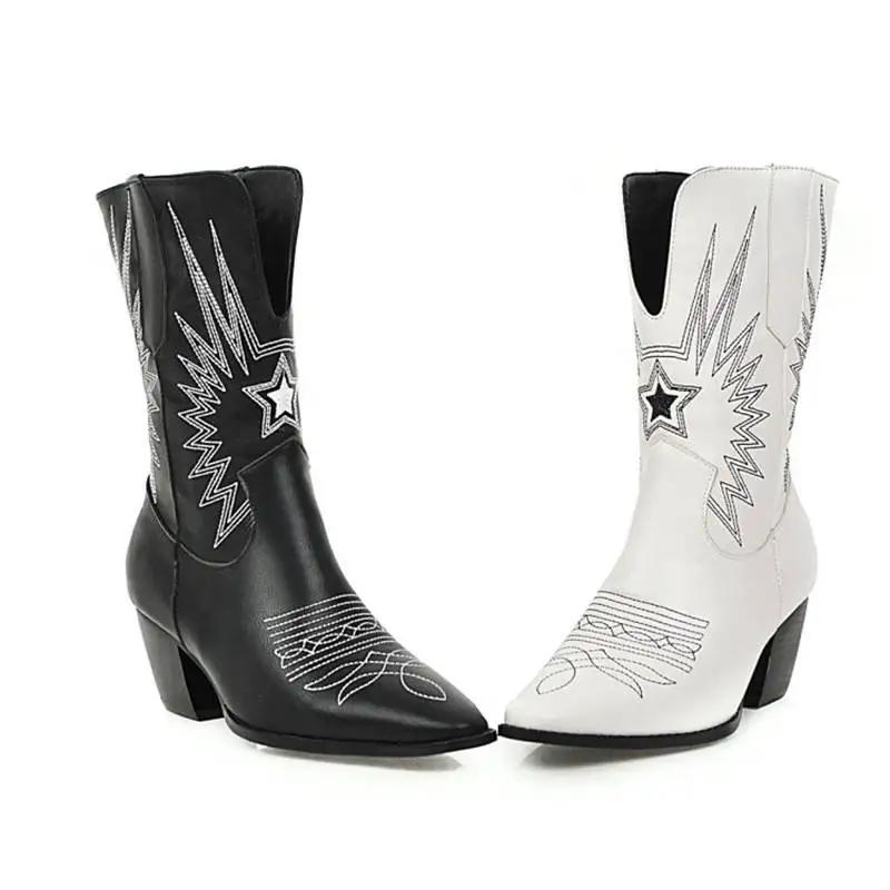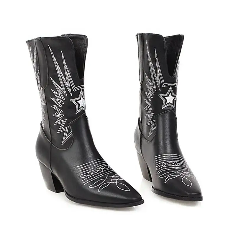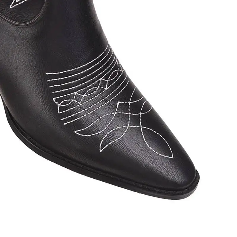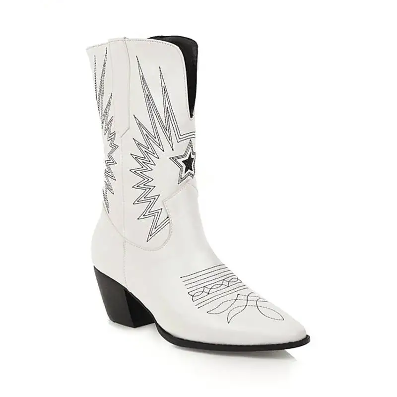 SIMLOVEYOженские ботильоны в ковбойском стиле, с острым носком, на толстом квадратном каблуке, из искусственной кожи, большие размеры 34-48, черный и белый цвета, Повседневная Осенняя обувь