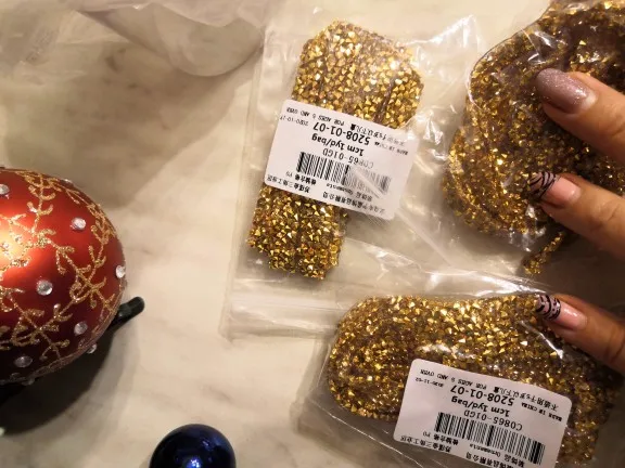 посылка пришла быстро. бусины на ленте объёмные. приклеить утюгом.