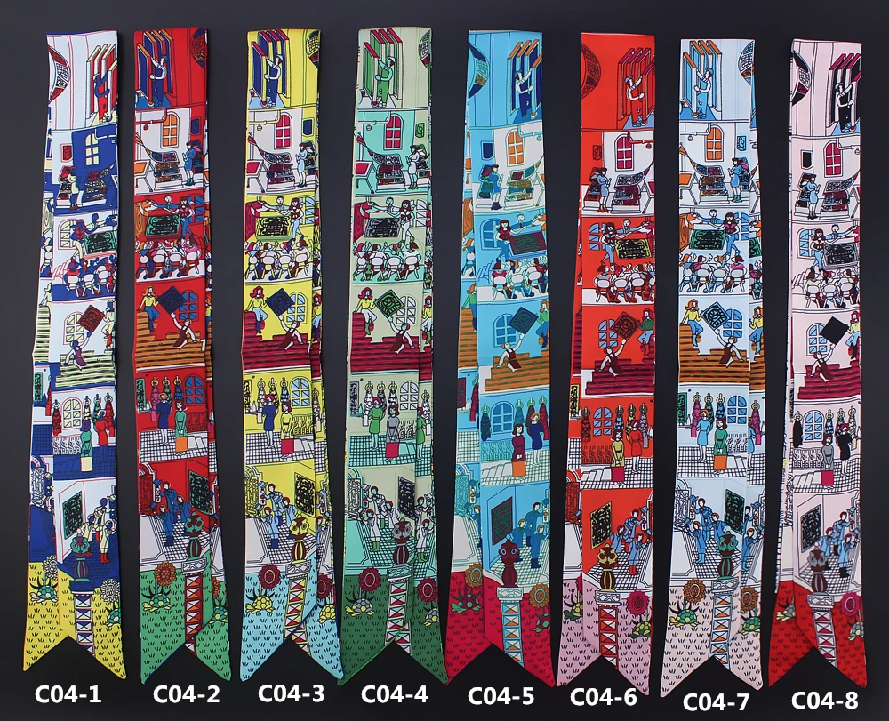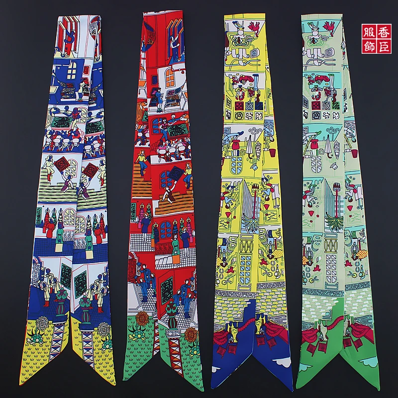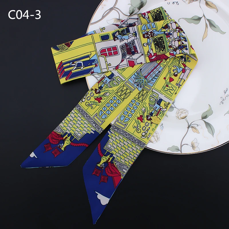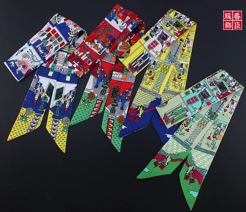 Новый стильный шарф женский шелковый шарф с принтом семьи Парижа модный головной шарф брендовый маленький галстук ручка сумка ленты маленькие длинные шарфы