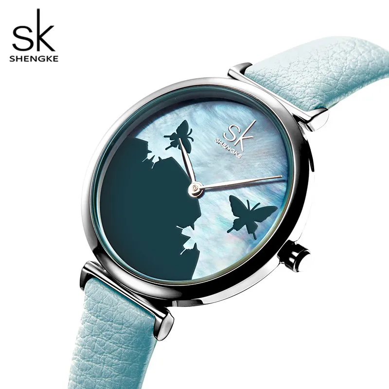Часы Shengke SK женские, романтические кварцевые наручные, с сельским циферблатом, с кожаным ремешком