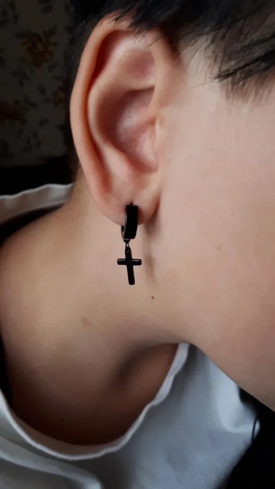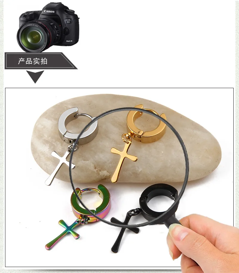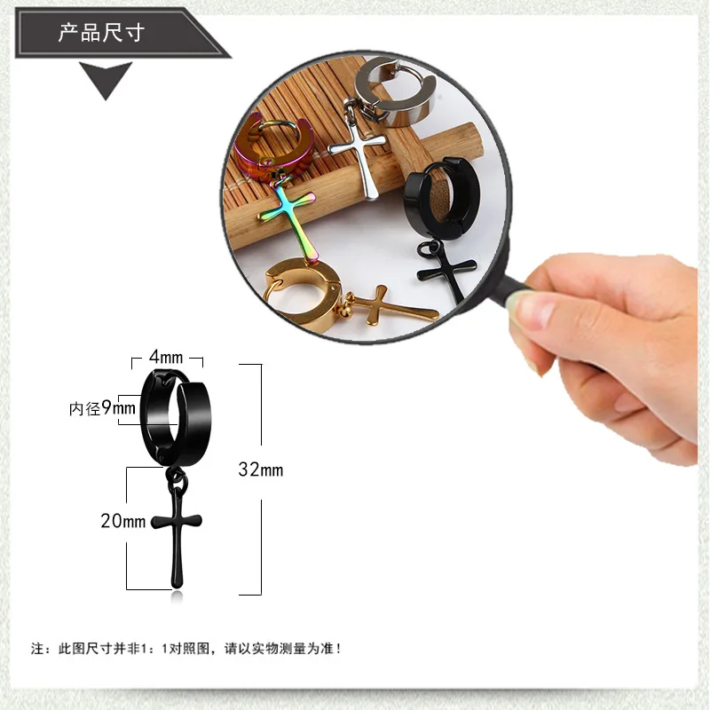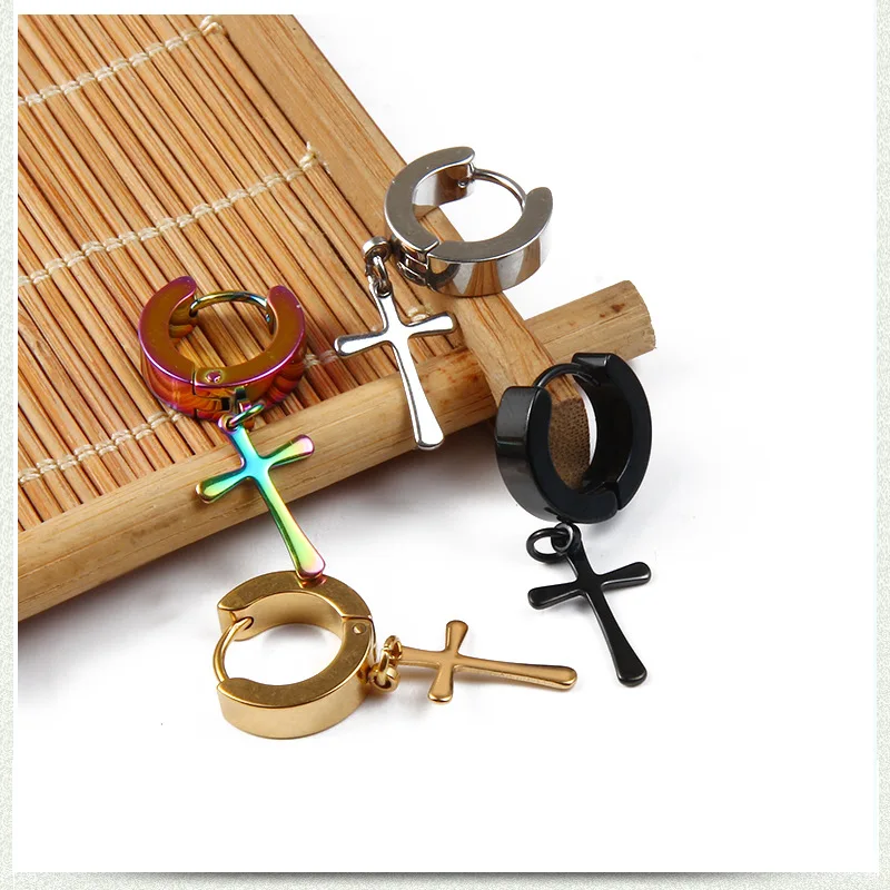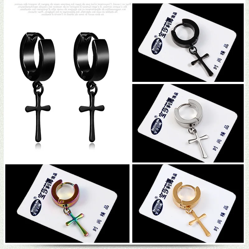 Серьги-Подвески мужские из нержавеющей стали, висячие ювелирные украшения в готическом стиле панк-рок, крест черногосеребряного цвета