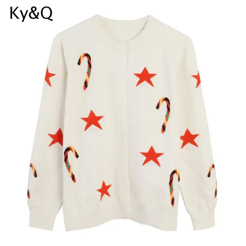 Женский вязаный кардиган с вышивкой пентаграммы, Свободный кардиган с длинным рукавом и круглым вырезом, пальто, топ, 2021