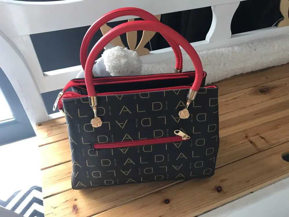 Сумка немного маленькая. На фото выглядит намного больше. Он милый. Соответствует картинке. Но красный очень яркий. Почти Флуо.