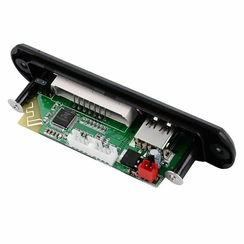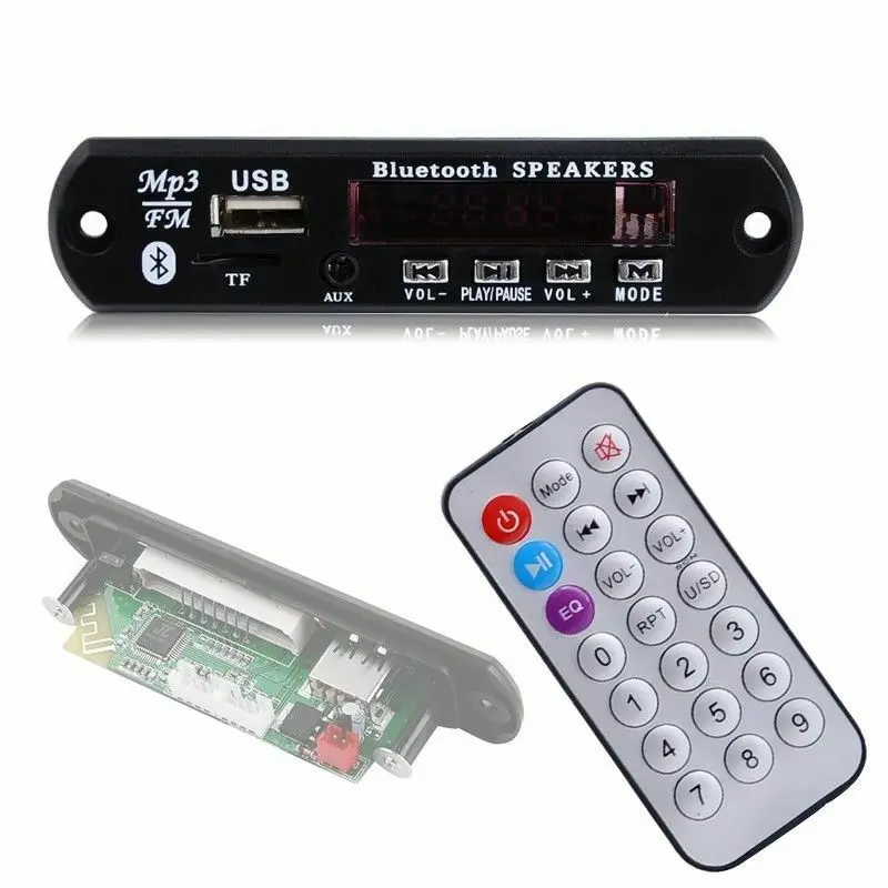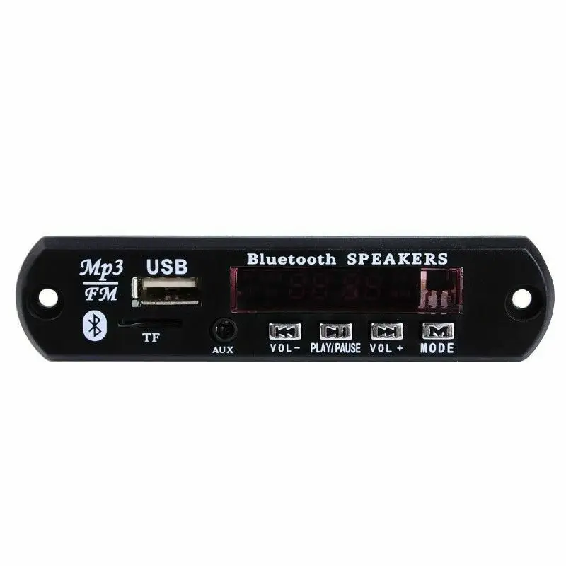 Особенности: * Поддержка Мобильный телефон bluetooth беспроводной MP3-плеер. * Поддержка функции fm-радио, автоматический поиск станции и хранение ее. * Поддержка функции входа AUX. * Поддержка Светодиодный индикатор для отображения рабочего состояния. * Поддержка USB/ SD/ Bluetooth/fm-радио/AUX свободный переключатель. * Поддержка MP3/ WAV/ WMA формат аудио. * Поддержка FAT16, FAT32 файловой системы. * Поддержка 32-320kbps MP3 музыки. * Поддержка функции отключения памяти. Спецификация: Материал: пластик + PCB Цвет: черный Входное напряжение: 12 В Формат декодирования музыки: WAV/ mp3/ WMA/ FLAC Интерфейс: USB/ TF/ AUX Версия Bluetooth: 4,0 Беспроводная Частота Bluetooth: 2,4 ГГц Частота fm-приемника: 76-108 МГц Частотный диапазон: 20 Гц-20 кГц SNR: >93 дБ Искажение: <1% Размер: прибл. 2,54 см × 10,7 см × 3 см/1 × 4,21 × 1,18 дюйма Вес: прибл. 40 г