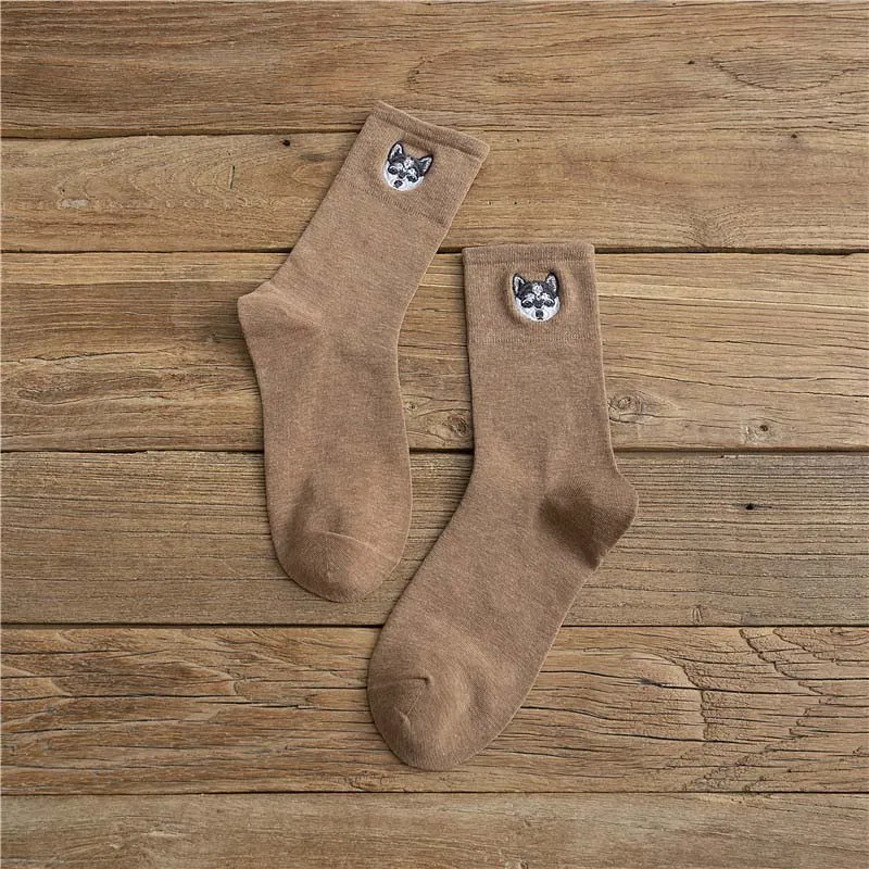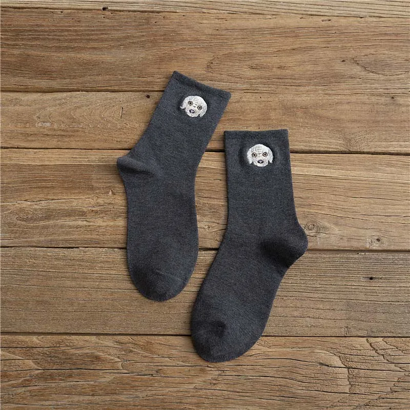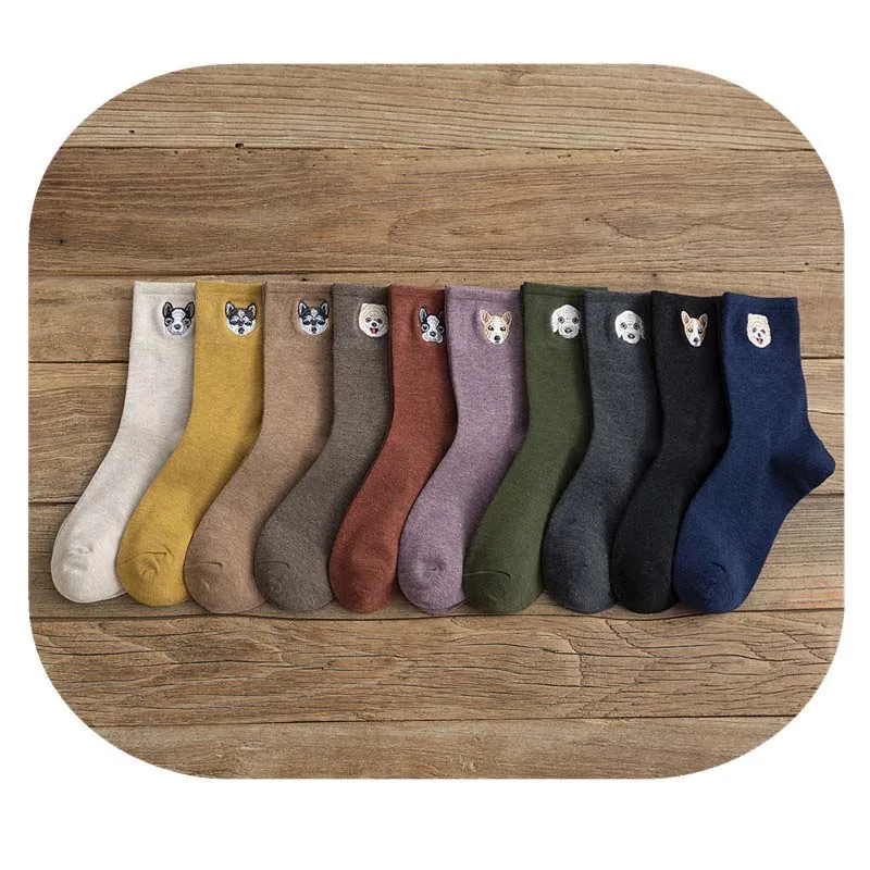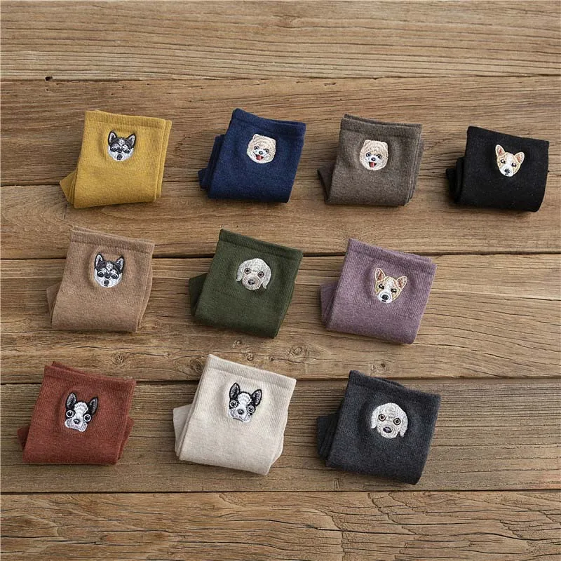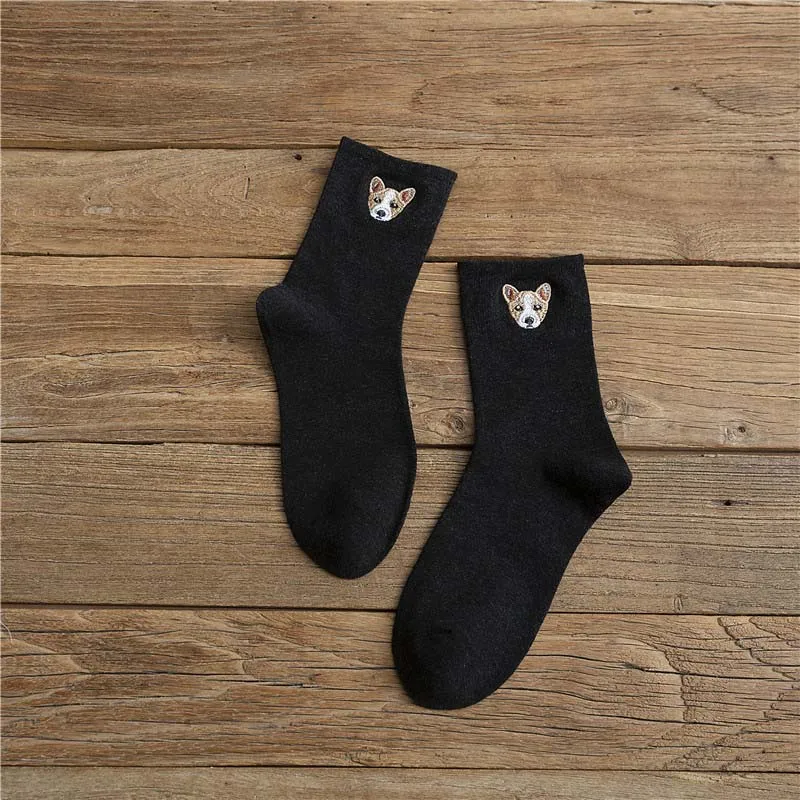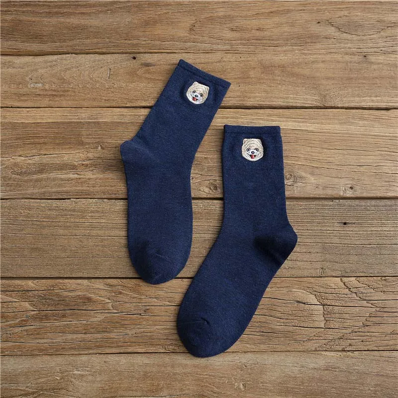 Теплые забавные носки для животных с вышивкой в стиле Харадзюку, женские милые японские носки, новинка, хлопковые носки, женские носки
