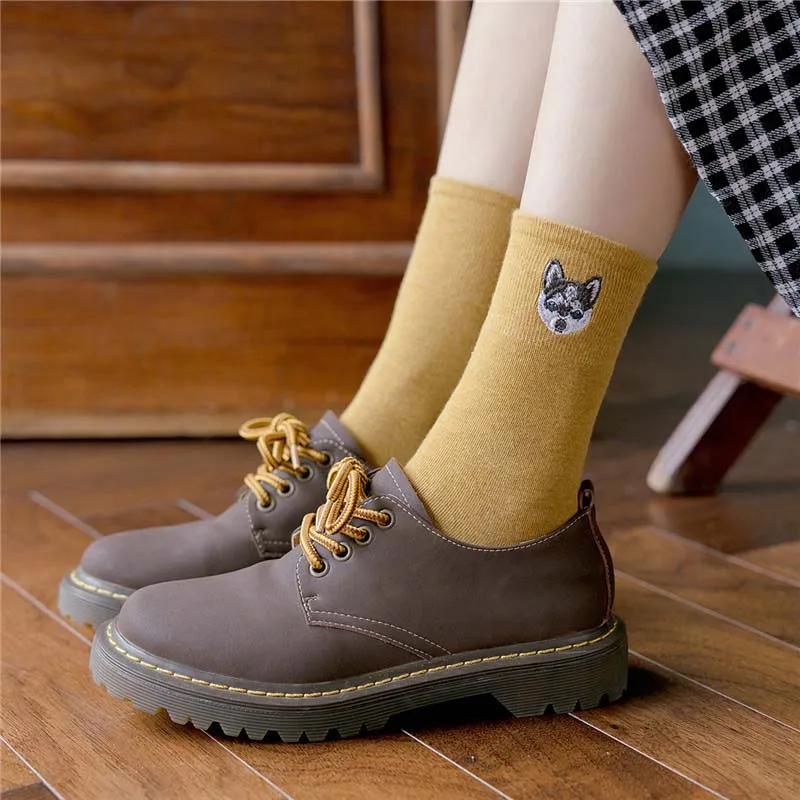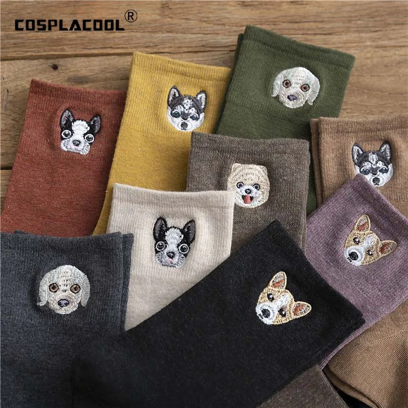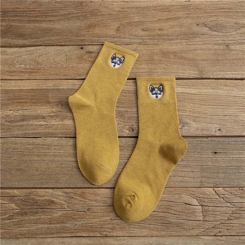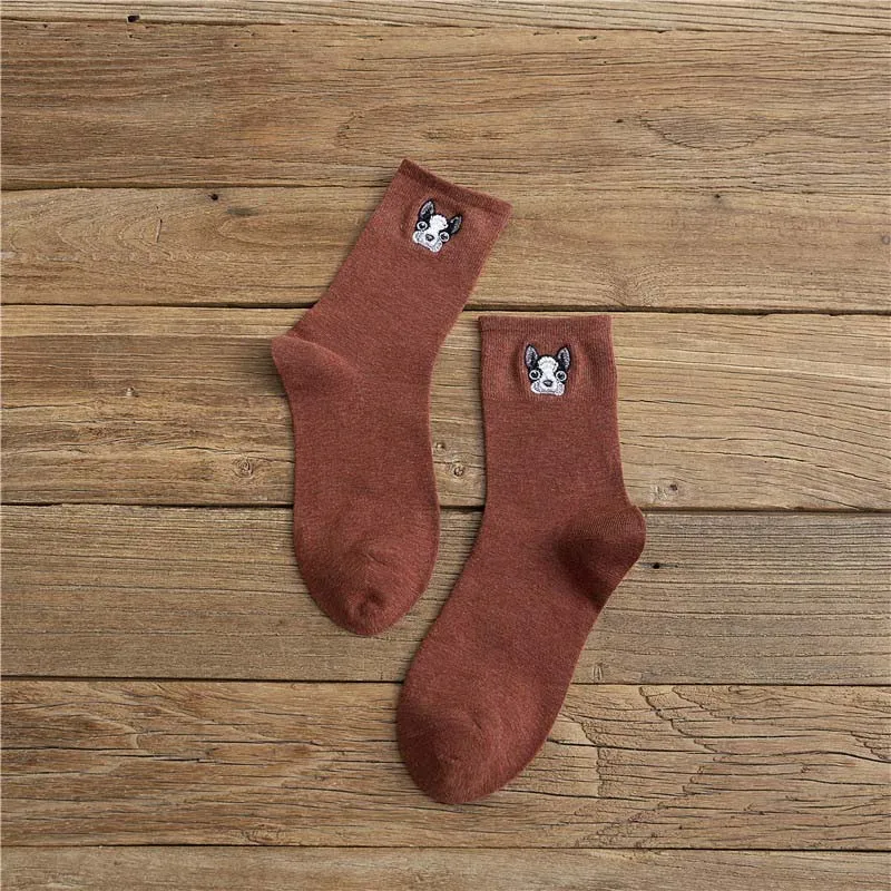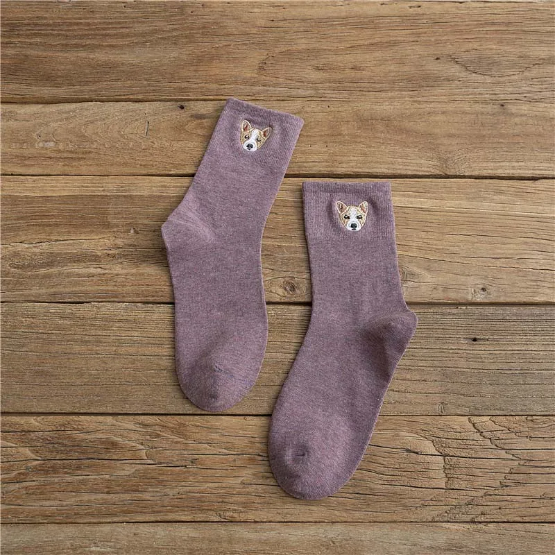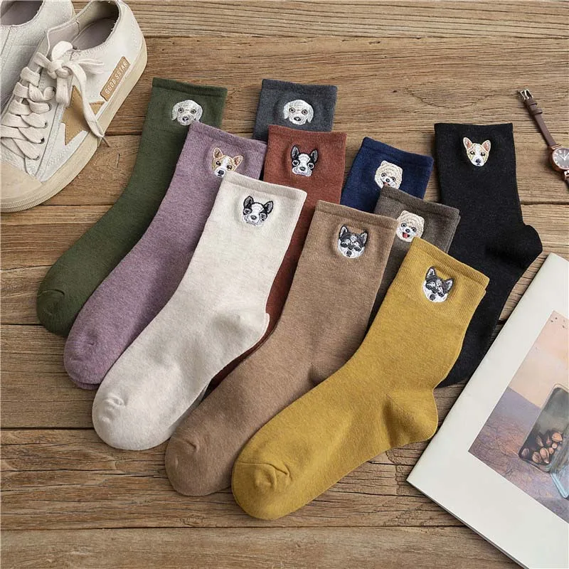 Теплые забавные носки для животных с вышивкой в стиле Харадзюку, женские милые японские носки, новинка, хлопковые носки, женские носки