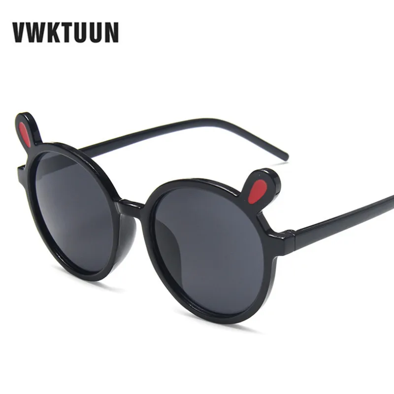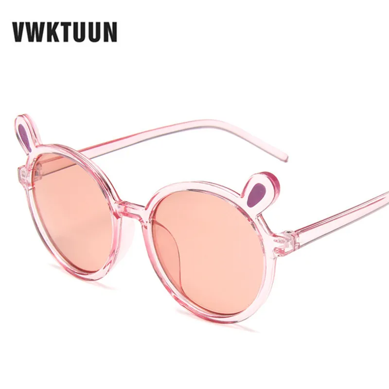 Модные детские солнцезащитные очки VWKTUUN, красочные милые очки с ушками медведя, круглые солнцезащитные очки для мальчиков и девочек, зеркальные детские солнцезащитные очки