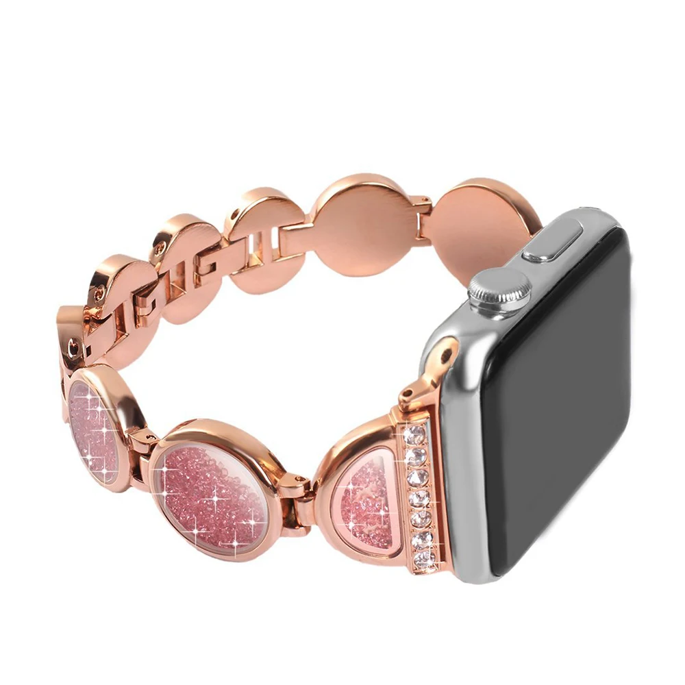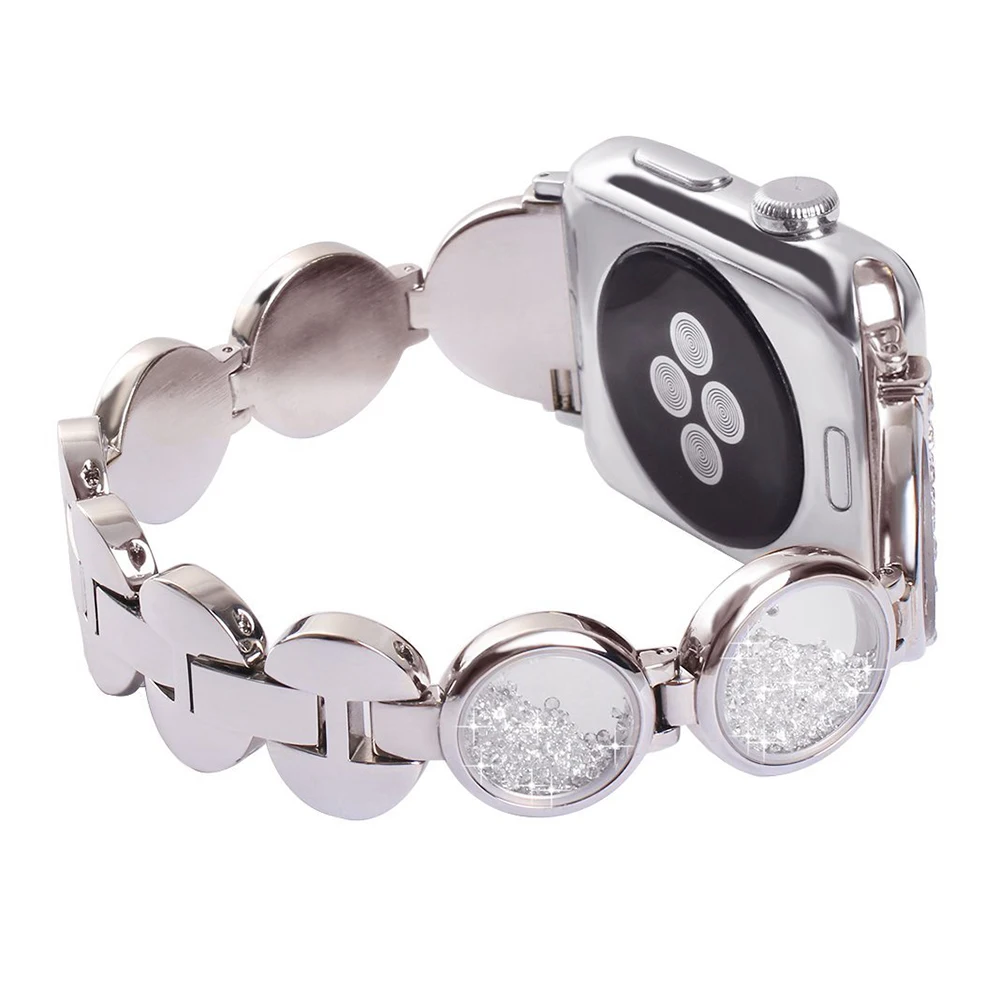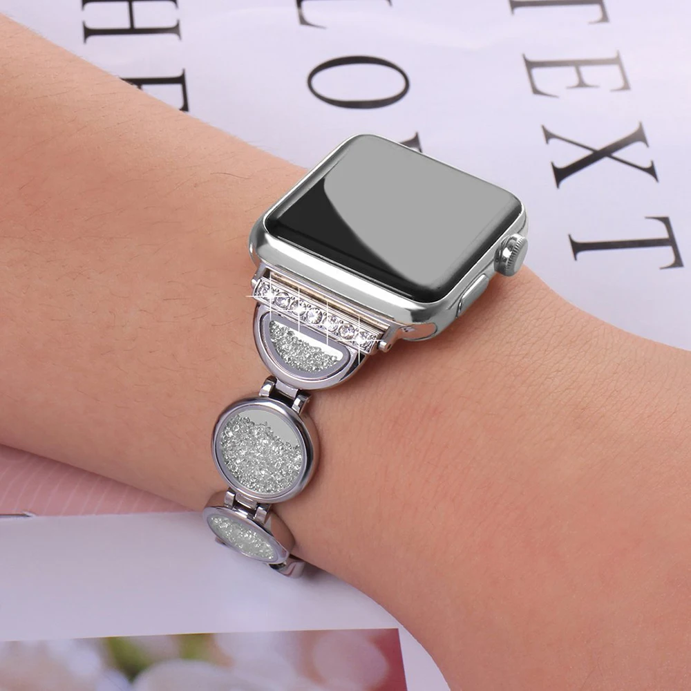 Браслет из нержавеющей стали для Apple Watch 3 38 42 мм, роскошный бриллиантовый ремешок для iwatch Series 7 4 5 6 SE 40 41 45 44 мм