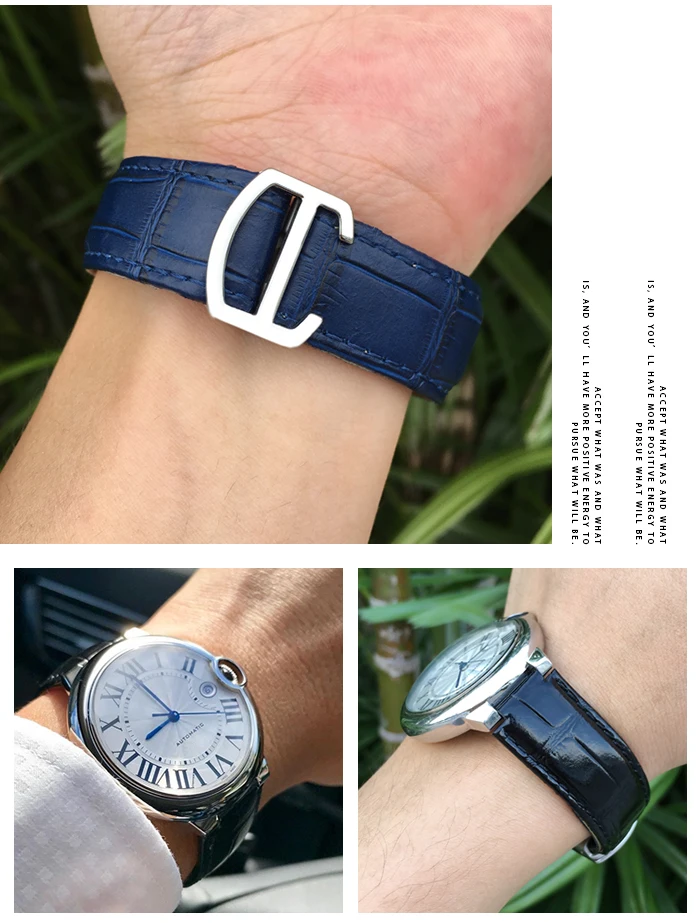 Ремешок кожаный для мужских часов, черный синий коричневый браслет ...