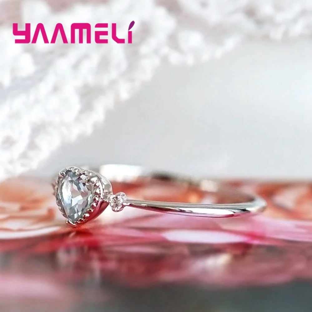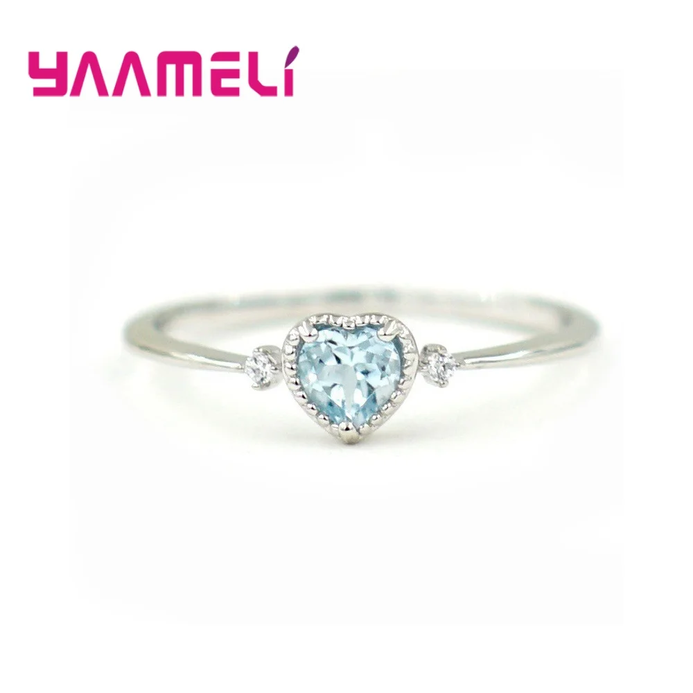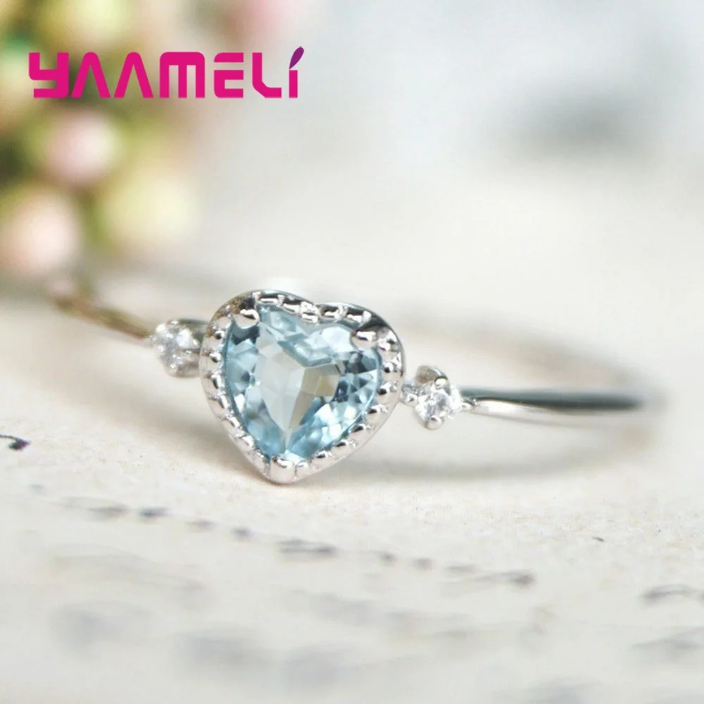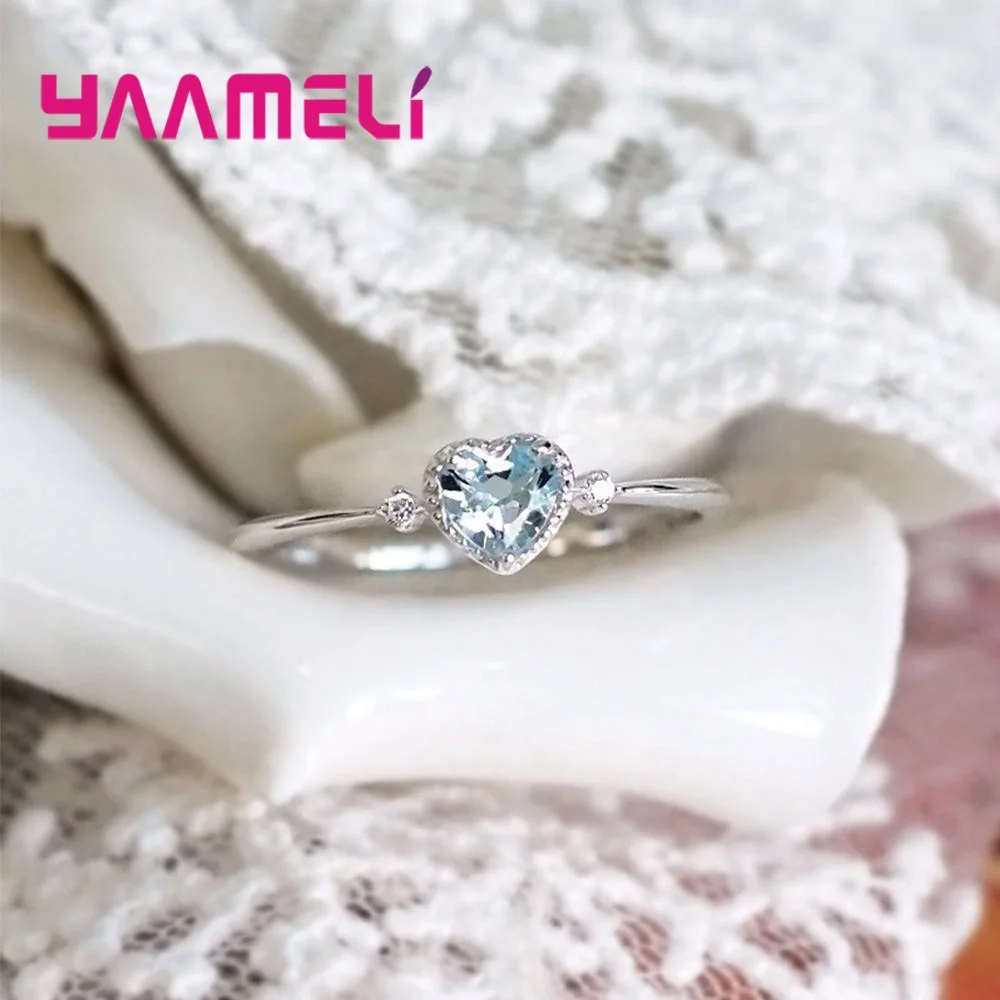 Новинка 2020, модные женские кольца, изысканное серебро 925 пробы, популярный светильник, Синий австрийский кристалл, Шарм в форме сердца, ювелирные украшения