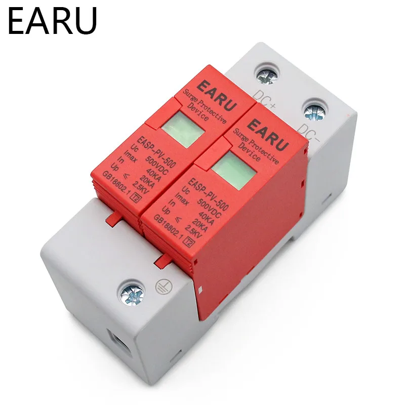 Устройство SPD 2P для защиты от вспышек и перенапряжений, устройство для защиты дома от низкого напряжения, 500 В постоянного тока, 20 ка 40 кА, для PV солнечных фотогальванических систем
