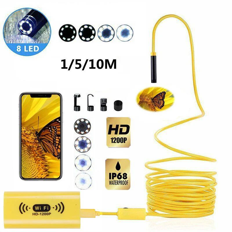 Камера-Эндоскоп IP68, водонепроницаемая камера-Бороскоп с полужесткими трубками, 8 мм, Wi-Fi, HD, 1200P, USB, для осмотра видео, для AndroidiOS