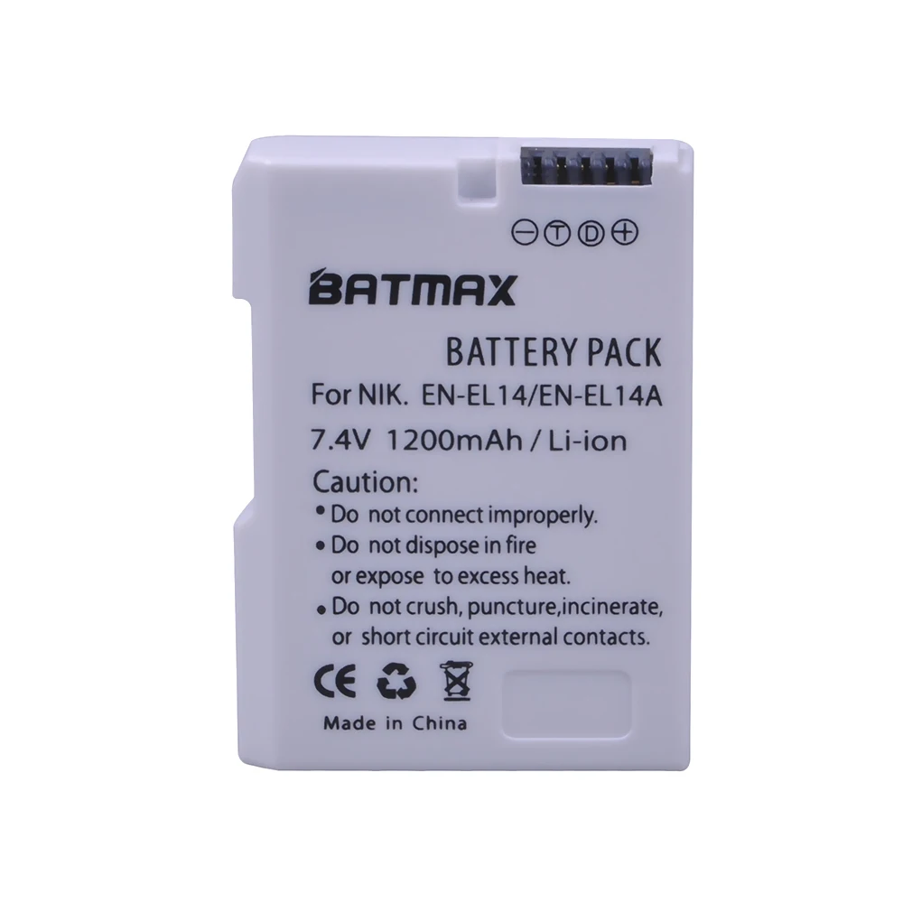 Батарея для камеры Batmax 1200mAh EN-EL14 EN-EL14AДля Nikon D3100 D3200 D3300 D3400 D3500 D5600 D5100 D5200 P7000 P7800 P7700