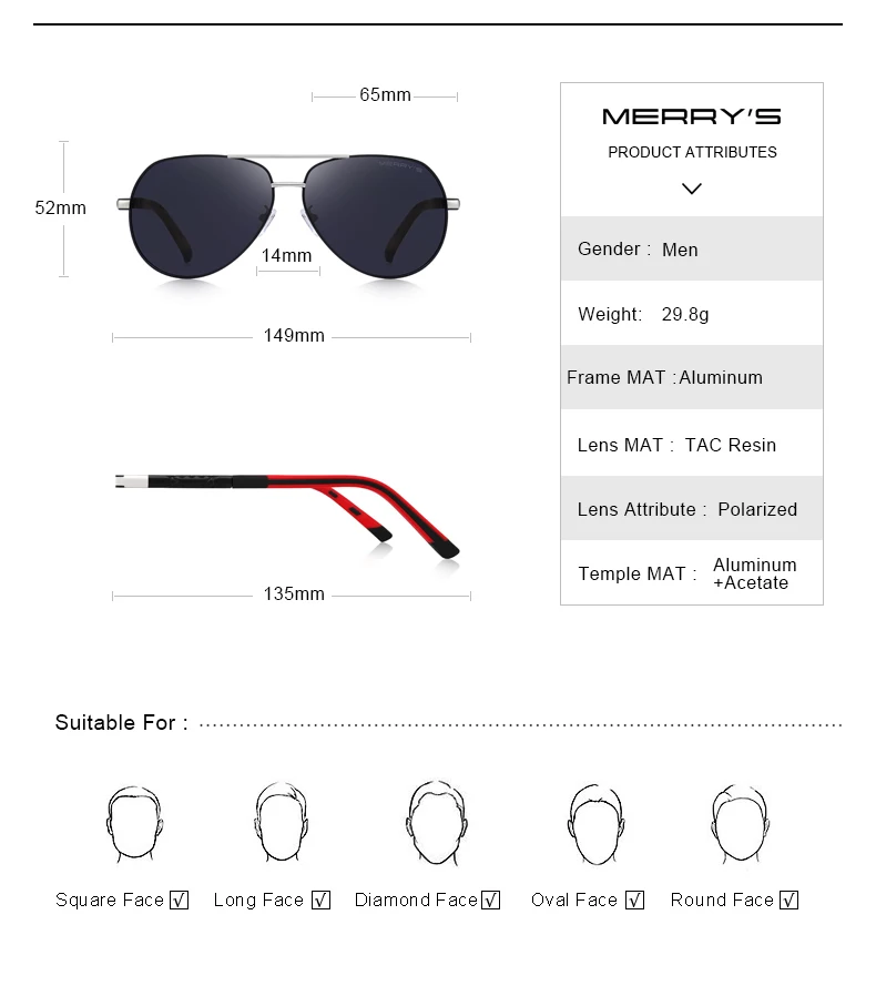 MERRYS дизайнерские мужские классические алюминиевые HD Поляризованные солнечные очки пилота авиационная оправа для вождения UV400 защита S8725